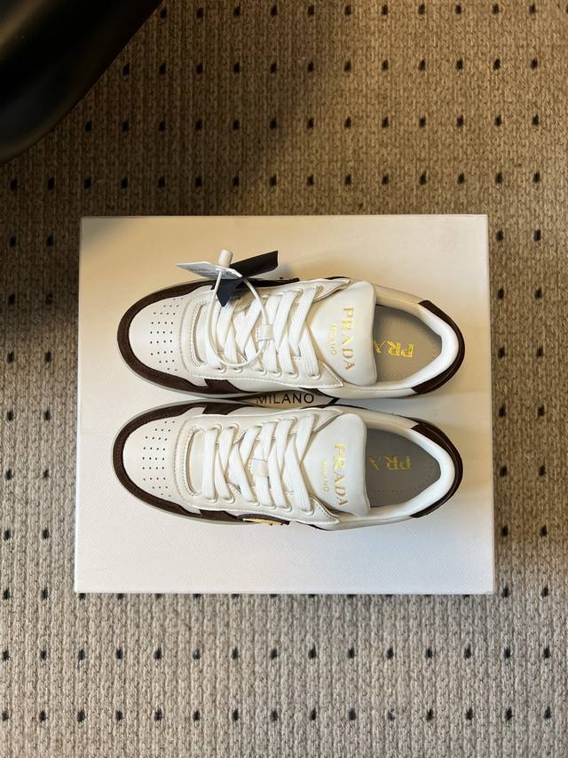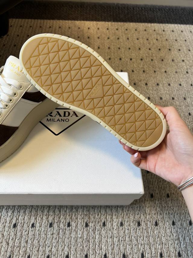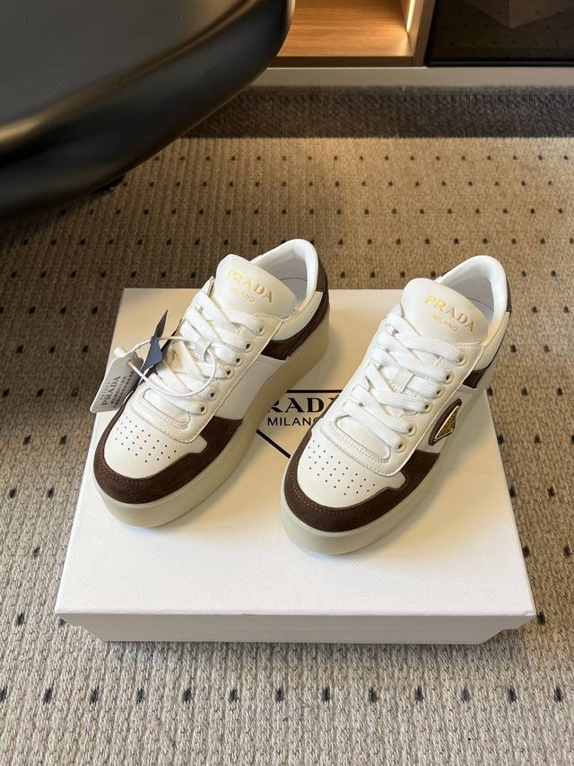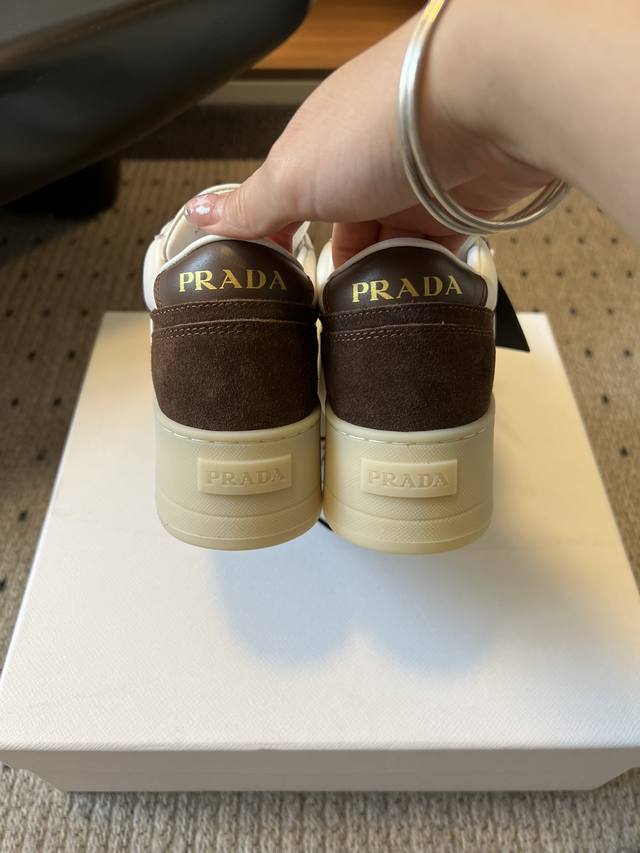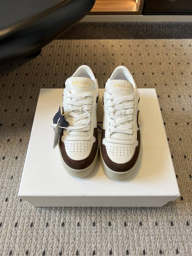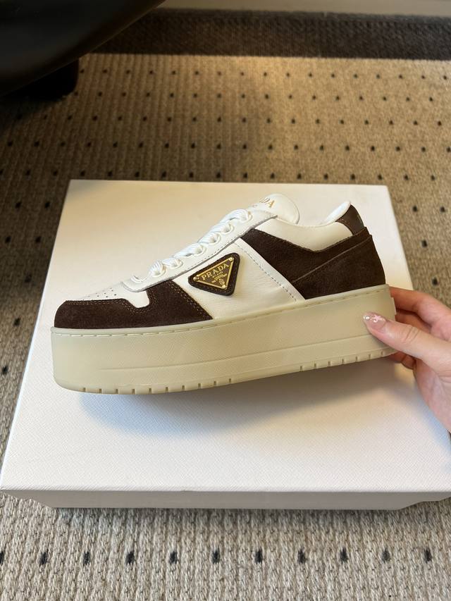 prad*25Ss Thick-Soled Casual Shoes DDD Made with a combination of leather and suede, the white base is accented with contrasting dark and light brown color blocks, creating a strong retro vibe. The iconic Prada triangle logo on the side enhances brand recognition. DDD Ventilation perforations at the toe enhance practicality. White laces echo the shoe's design, resulting in clean and simple lines suitable for diverse styles. The thick sole's "retro and relaxed" feel clashes with sweet and cool elements, retaining a youthful touch while elevating the look with Prada's premium quality, making it suitable for parties, trendy gatherings, and other occasions. DDD Upper: Cow Suede DDD Lining: Sheepskin DDD Outsole: Original Mold Outsole DDD Height Increase: 6cm DDD Sizes: 35, 41, 40, 41 (Custom orders are non-refundable and non-exchangeable DDD)