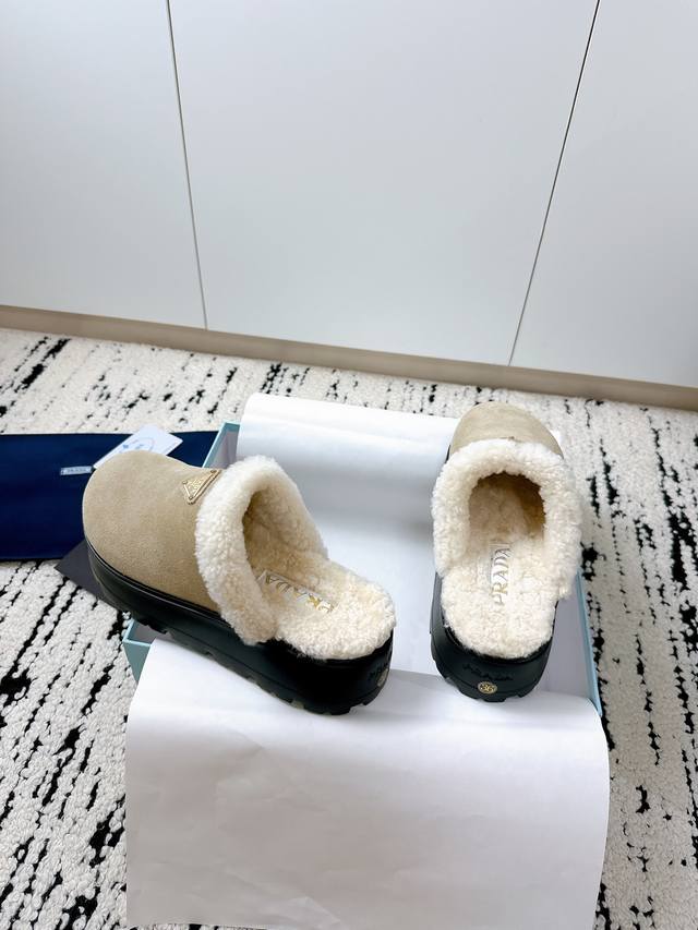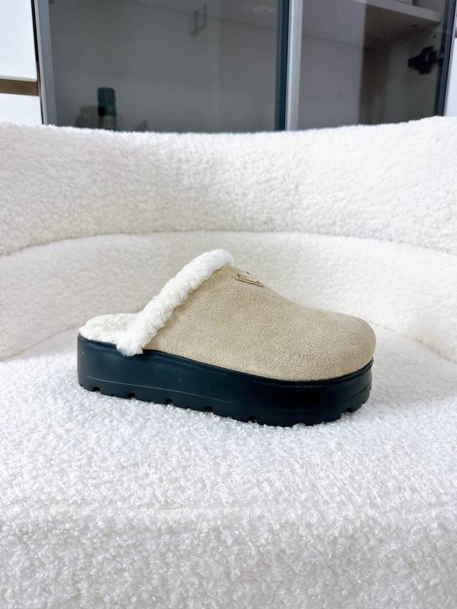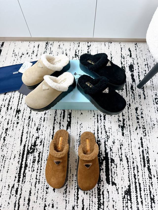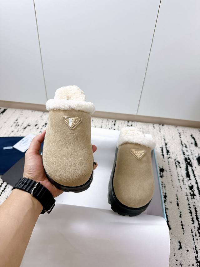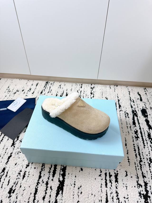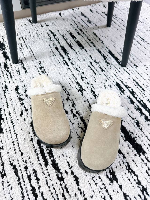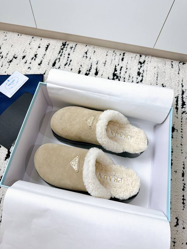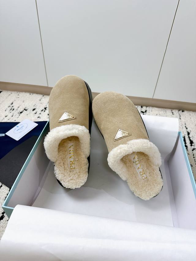 Prada 2025 Spring/Summer New Furry Slippers | High-end quality easily achieved, enjoy the same style as celebrities! DDD's iconic triangle logo + retro beach shoe design: a classic combination that instantly elevates your style, making you the center of attention wherever you go! DDD Available in vibrant colors to easily match different styles, be a fashionista! DDD Lightweight and comfortable, super easy to walk in, a must-have for spring and summer! DDD Size: #35-41 DDD