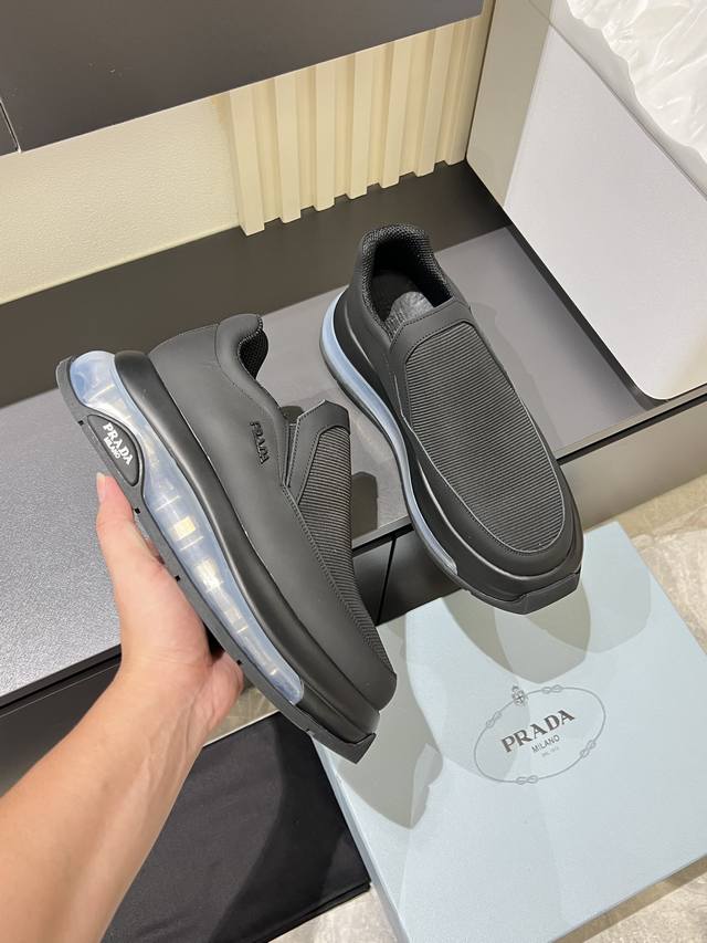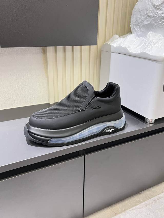Prada* Men's casual shoes, made of imported cowhide upper, Prada triangle logo, lambskin lining, original air cushion sole, rubber sewing process, rubber bottom padding, excellent shock absorption effect, comfortable to wear!