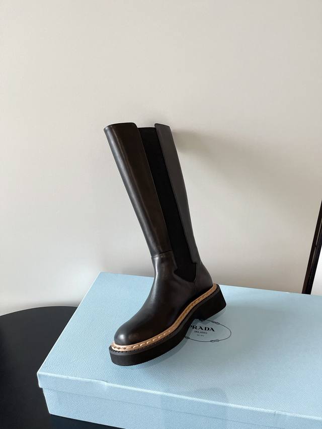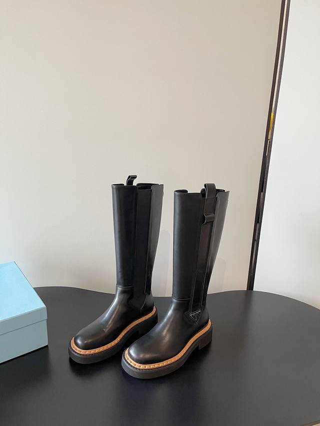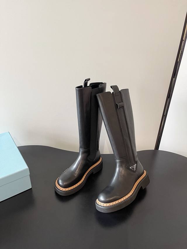 Prada's latest elasticated, thick-soled motorcycle boots are stylish and casual. These stylish, easy-to-wear motorcycle boots are a hit every year. Their classic last is enough to captivate you, creating a stylish look while adding height and effortless style.