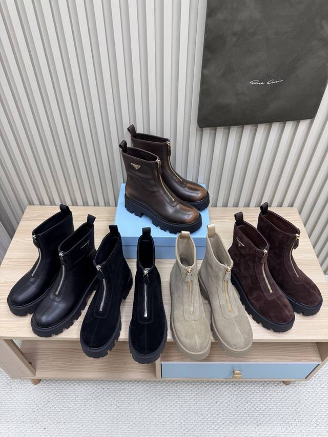 Prada's Martin boots are the coolest street style. Made from the original Prada model! A 1:1 replica of the original Prada model! These boots are truly stunning, and those with a love for detail will fall head over heels. Imported TPU outsole with tin mold vacuum forming. Non-slip and wear-resistant | tank-like thickness | for a commanding presence. Available in top-grain cowhide and sheepskin lining. Perfect texture | soft and comfortable to wear | for a comfortable, all-day wear. Side zipper for easy on and off | stylish and sleek | for a super stylish look. Perfect for couples wearing these boots. Versatile black boots with premium leather for a casual, street-inspired, and effortlessly stylish look! Comfort and style combine for a stylish look. Who says hardcore Martin boots can't be elegant and sophisticated? These boots have it all.