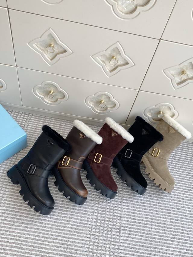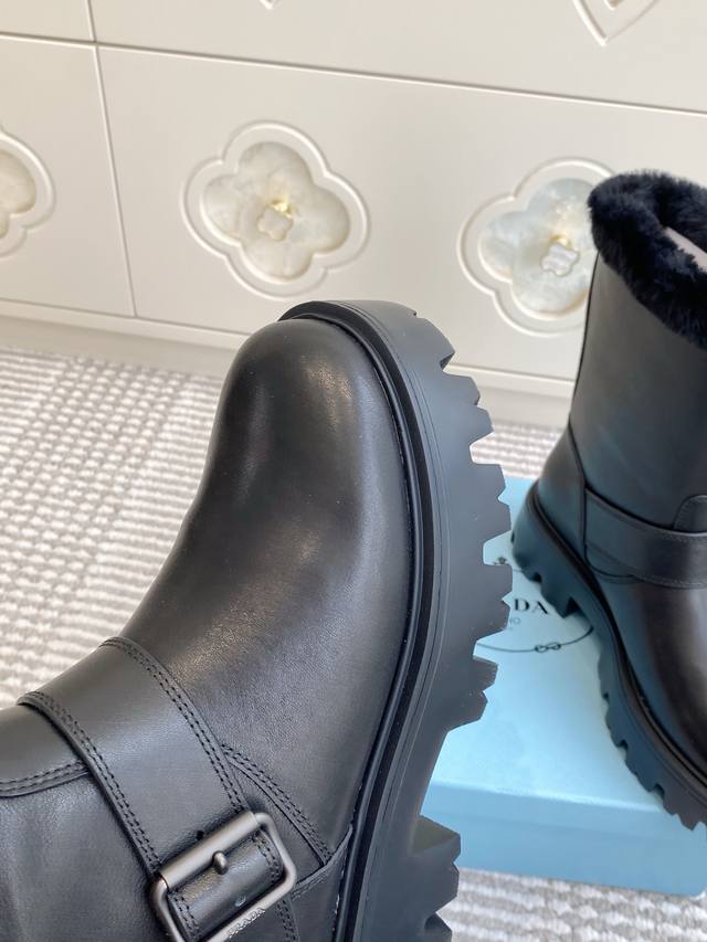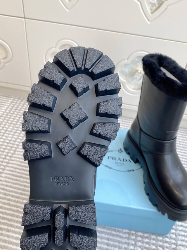 Prada's new retro platform ankle boots exude a high-end feel. Prada's new season boots perfectly understand the hearts of retro girls. The classic triangle logo adorns the shoe, instantly maximizing its recognizability. Available in imported cowhide and suede, each pair exudes understated luxury. The platform design subtly increases height and instantly optimizes proportions. The pure wool lining makes every step feel like walking on clouds. The retro distressed cowhide upper grows more appealing with each look. The high-end feel speaks for itself; you'll know it the moment you put them on. Wearing these will give you a sophisticated look throughout autumn and winter. #PradaNewArrival #RetroPlatformBoots #HighEndOutfit #AutumnWinterMustHaves Upper: Imported cowhide suede Lining: 100% wool Original molded tread pattern rubber outsole Size: 35-39 40.41 Custom orders are non-refundable.
