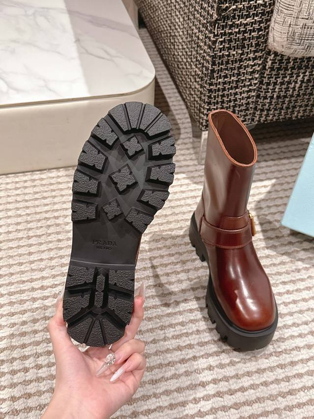 Prada's classic triangle-shaped, thick-soled slip-on boots for Fall/Winter 2025!