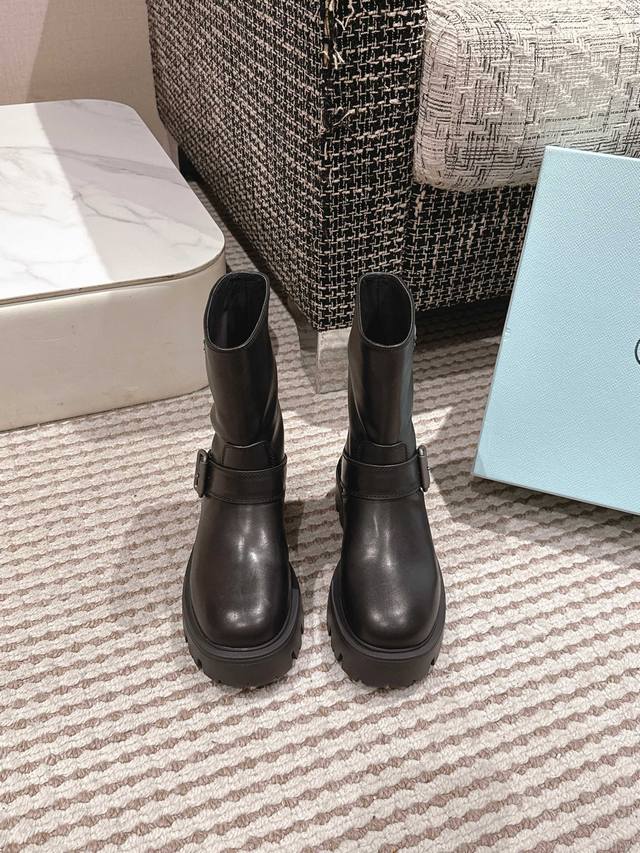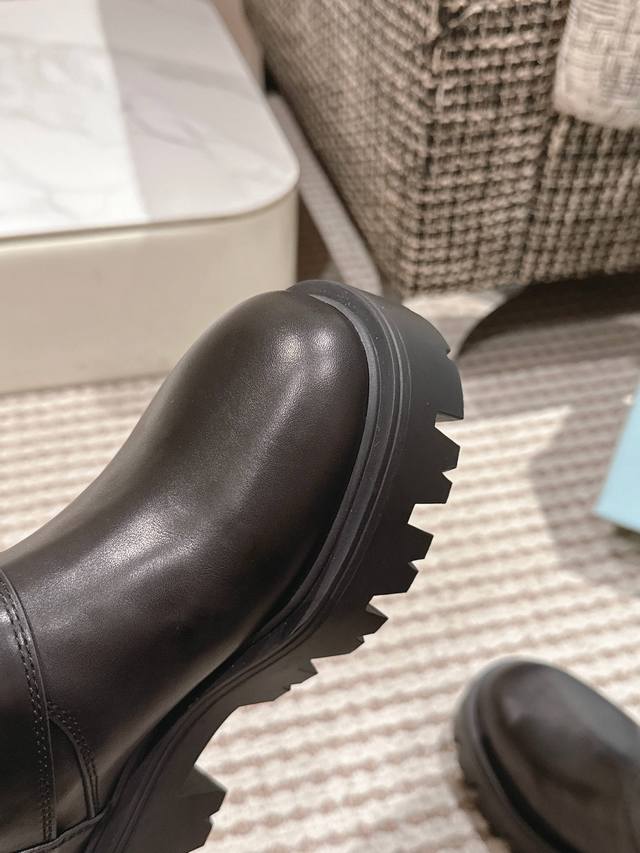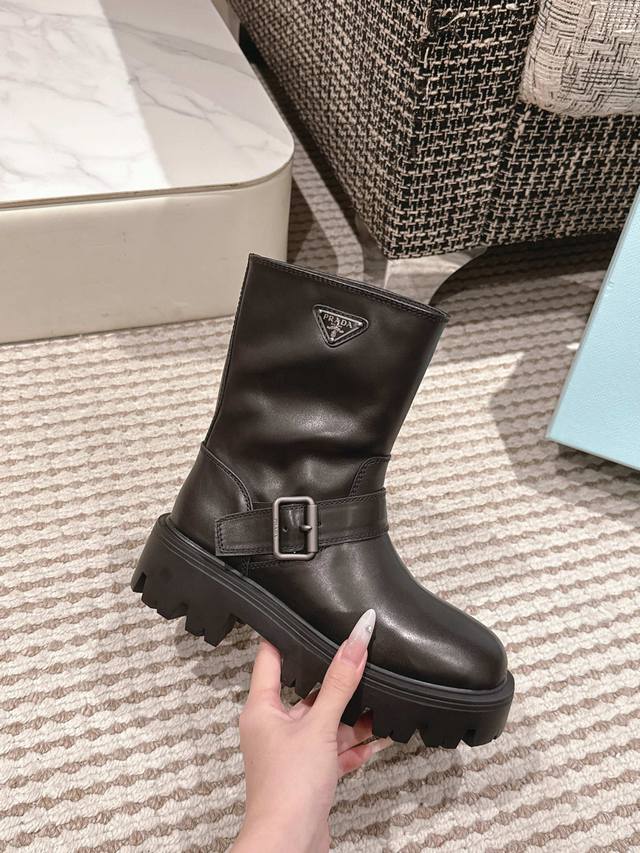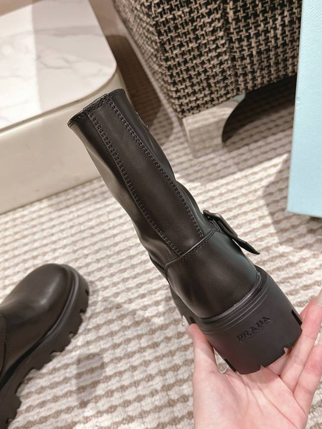 Prada's new Fall/Winter 2025 classic triangle-shaped platform slip-on boots!
