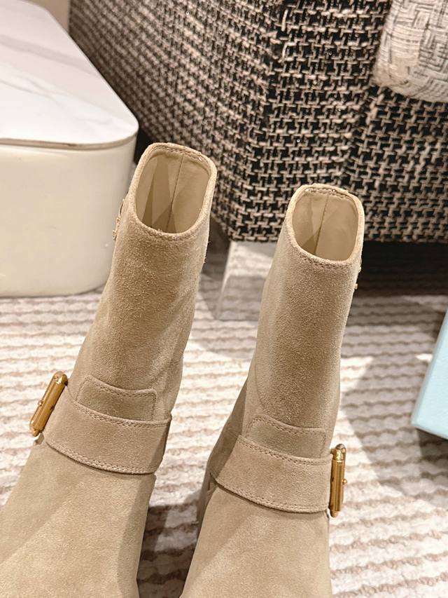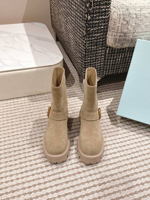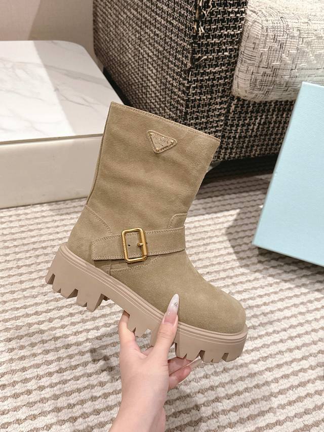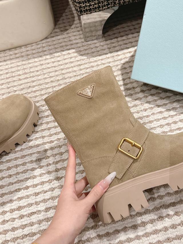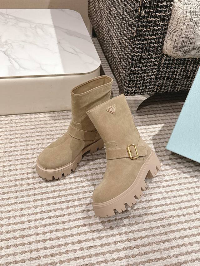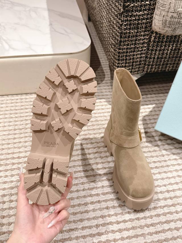 Prada's new Fall/Winter 2025 classic triangle-shaped thick-soled slip-on boots!
