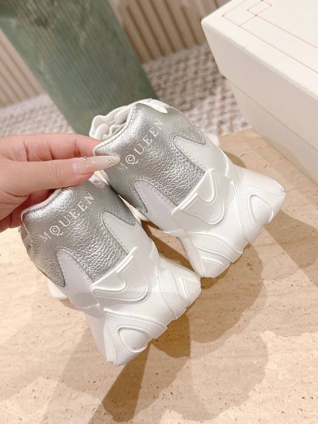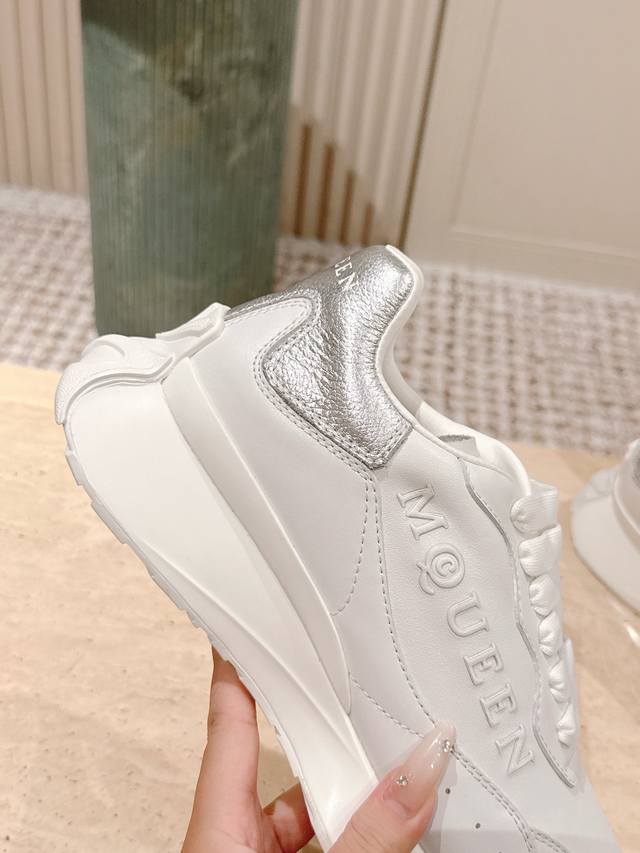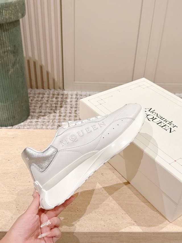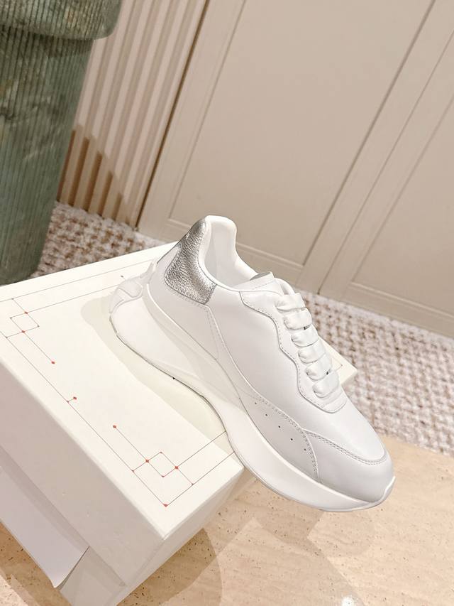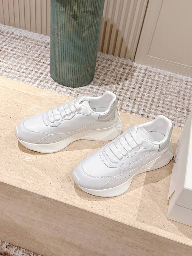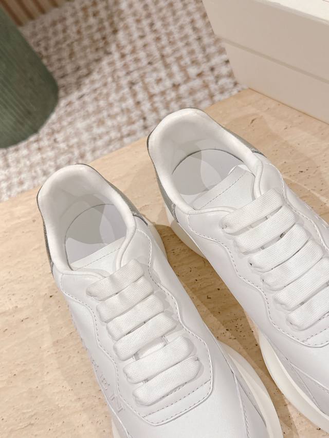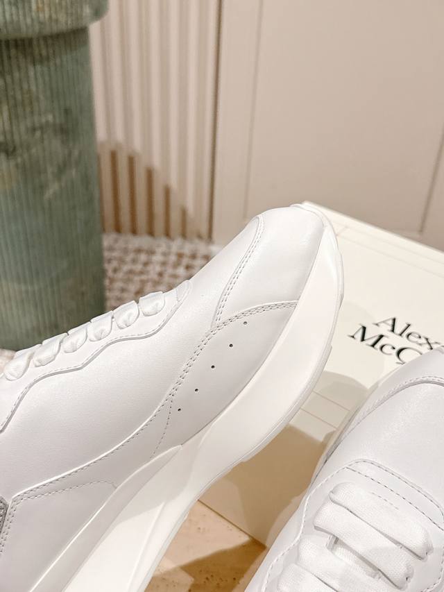 Alexander McQueen Sprint Collection Couple's Casual Sneakers, White Shoes, Dad's Shoes