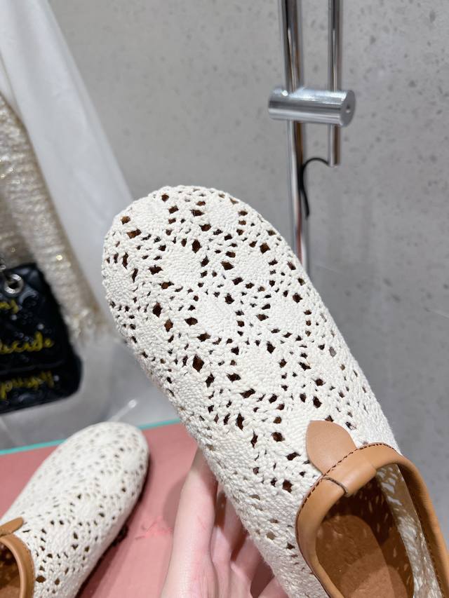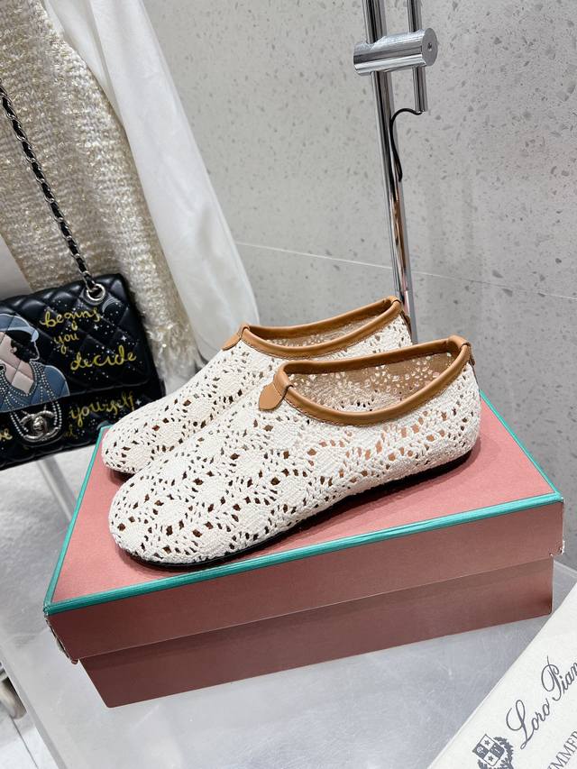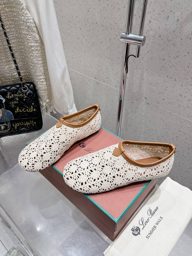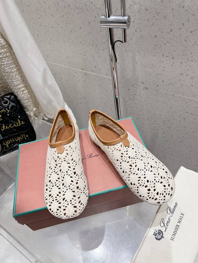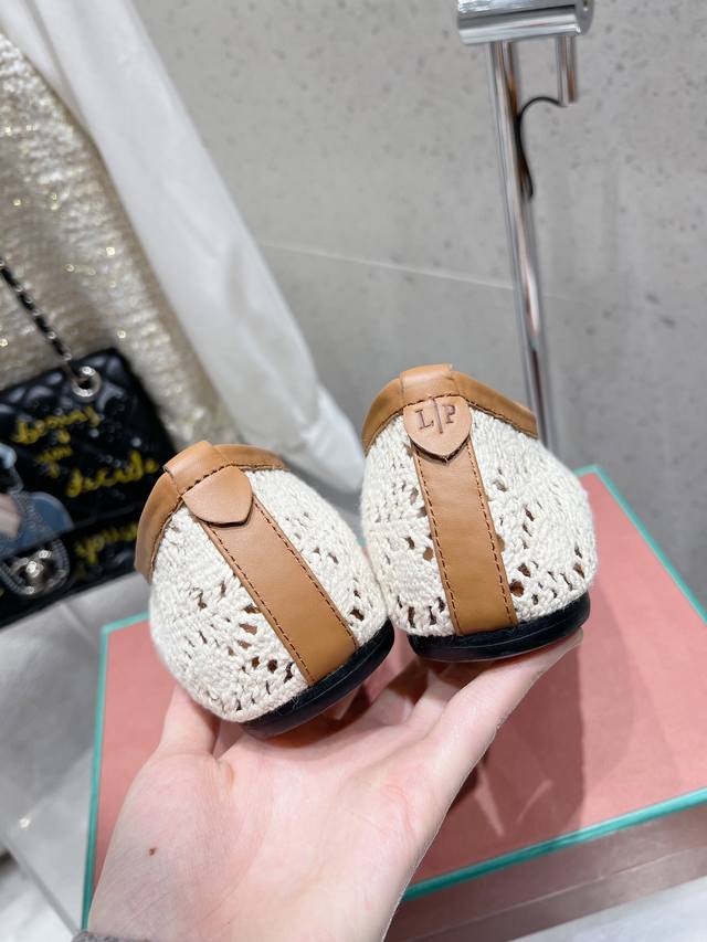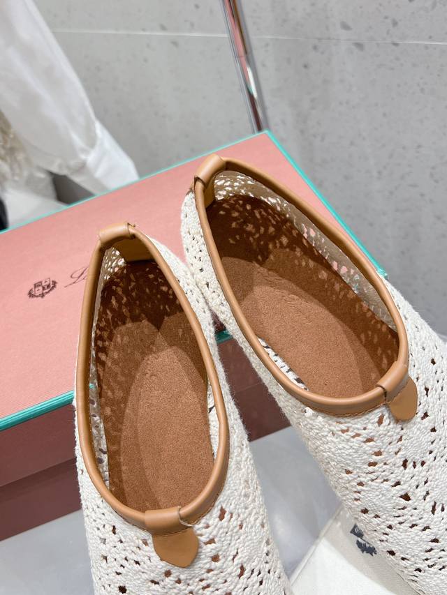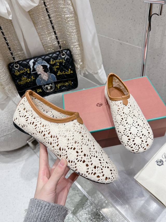 Premium Version Loro Piana Lp Knitted Mesh Flat Ballet Shoes New Release Raw Shoes | Upper Made With Woven Mesh Pattern Craftsmanship | 1:1 Replica Of The Store Packaging, Comfortable, Elegant, Lightweight, And Versatile Flat Ballet Shoes
