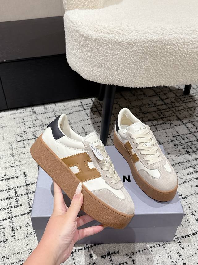 Premium women's Hogan 25 latest platform series H698 thick-soled casual sneakers. Originally purchased, developed, and crafted, this platform series sports casual shoe features linear lines, reimagined style, and a dashing stride. A clever blend of retro elements and urban fashion, the shoe's minimalist silhouette is both simple and sleek, yet distinctive and innovative. Delivered in exquisite packaging. Fabric: Original custom imported top-grain cowhide. Lining: Original custom soft sheepskin lining. Outsole: Original molded, non-slip rubber outsole. Sole thickness: 4.5cm. Size: #Women's35-40, 40 custom.