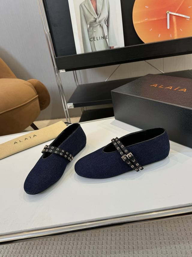 Alaia 24S New Retro Buckle Mary Jane Shoes Ballet Flats Runway Style Flat Ballet Shoes Zhang Xiaohui Same Style Sweet and Cool Ballet Style, a very popular ballet shoe, romantic and charming, comfortable and versatile, full of girlish style, both modern and retro, very simple and elegant, whether it's a skirt, dress or jeans, it can be the finishing touch!