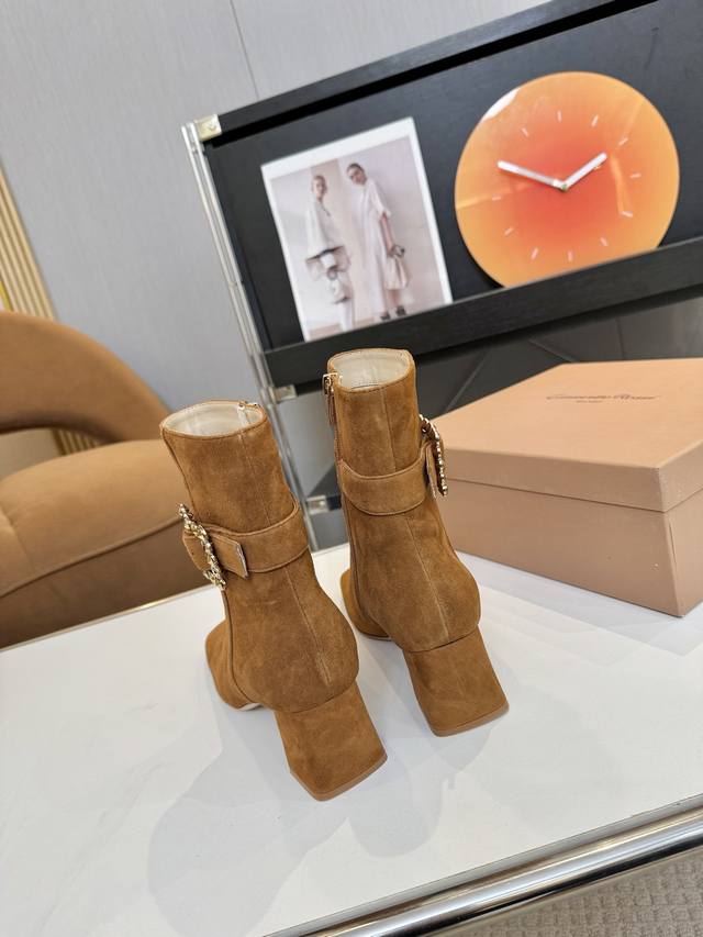 upper is made of suede, soft and delicate in texture, exuding a luxurious and sophisticated feel while adding a touch of retro elegance to the overall look. The classic pointed toe design naturally lengthens the leg line and flatters the foot shape, making it a timeless "leg-lengthening" weapon. The moderate shaft height falls into the ankle boot category, suitable for various trousers such as jeans and skinny jeans, or skirts such as dresses and skirts, making it versatile for various occasions. The