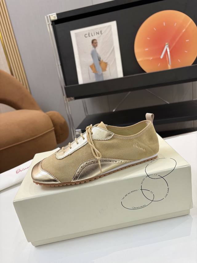The upper features handmade multi-layered stitching, drawing inspiration from the double-stitching process of cycling shoes.