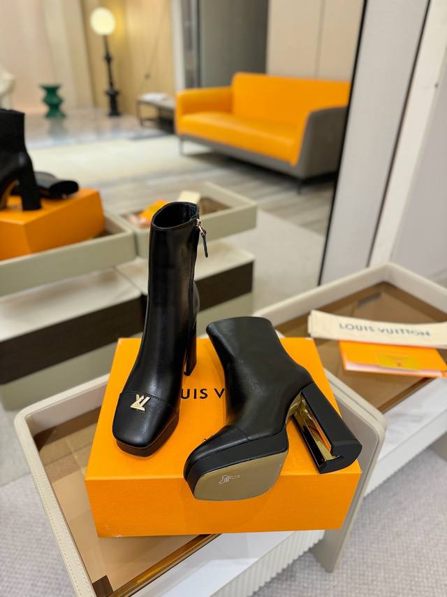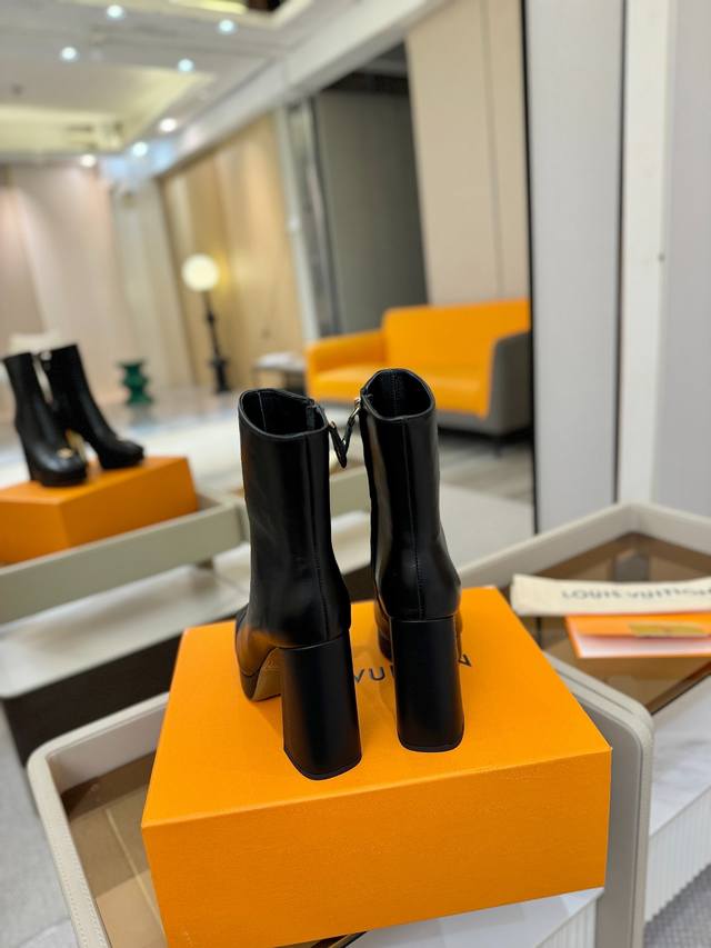 L brand autumn/winter runway 6-inch platform ankle boots, official website series, synchronized updates, perfect last + small V buckle + platform design, recreating the classic style, simple and elegant, comfortable to walk in, suitable for all body types, stylish and attractive on the feet, original molded last, perfect 1:1 shape, high-end quality, imported high-end fabric presents exquisite texture!