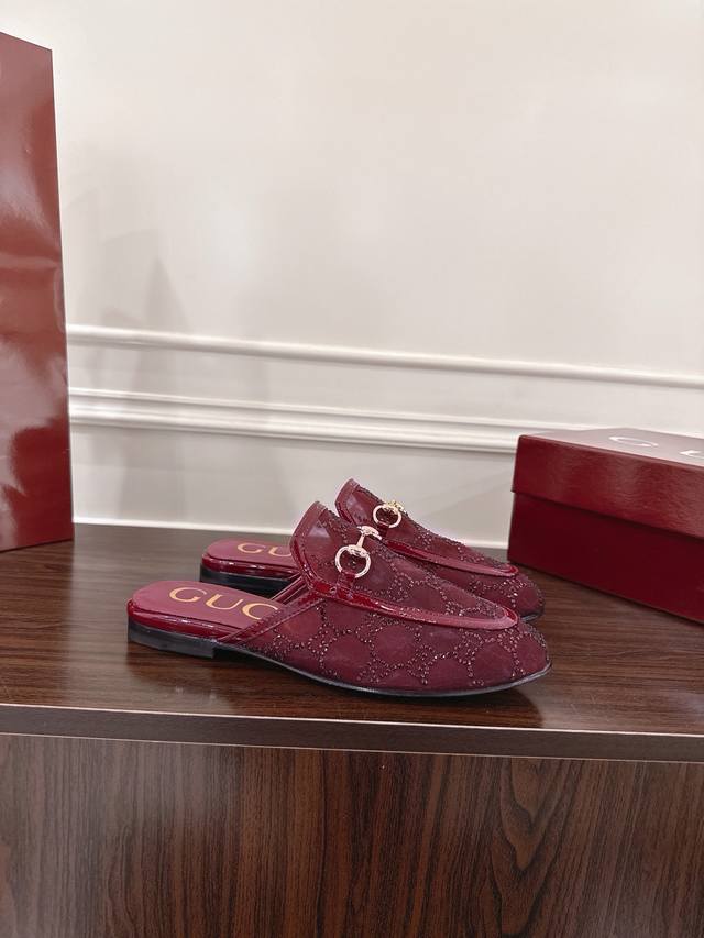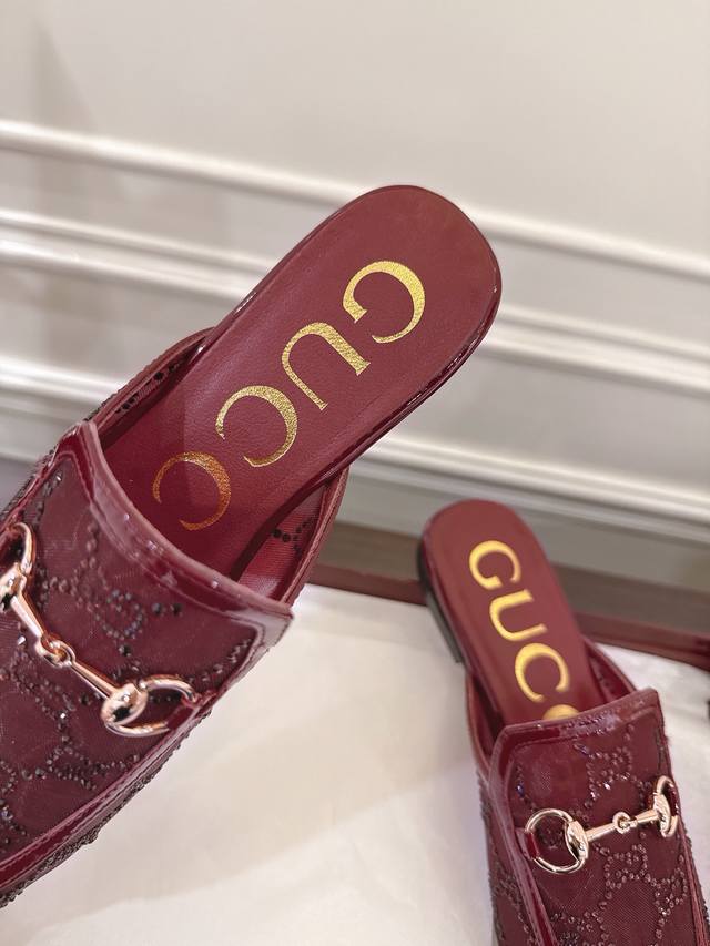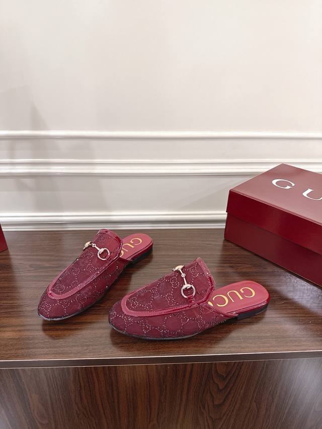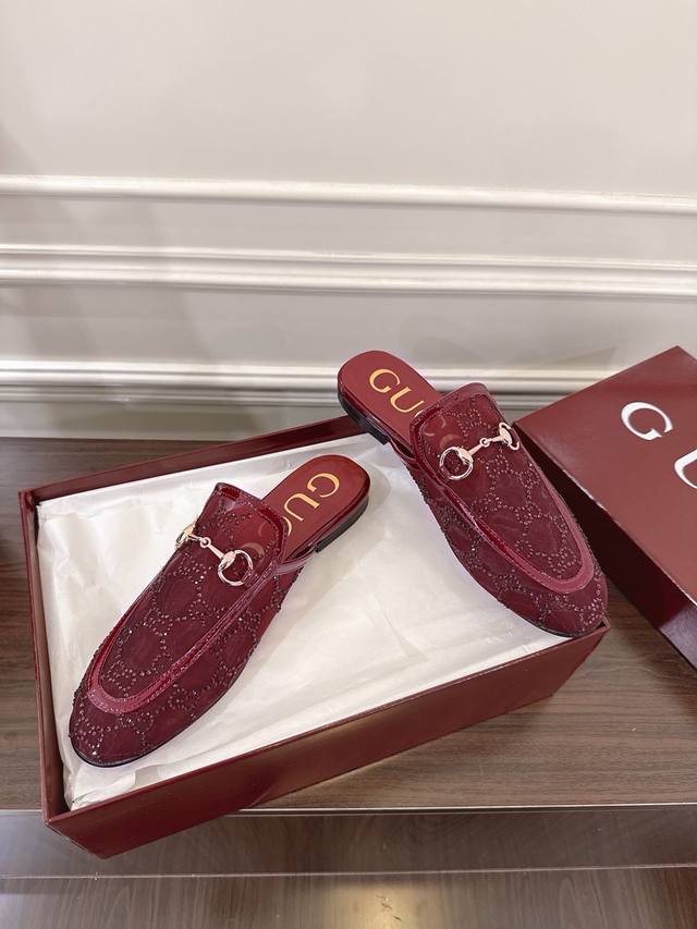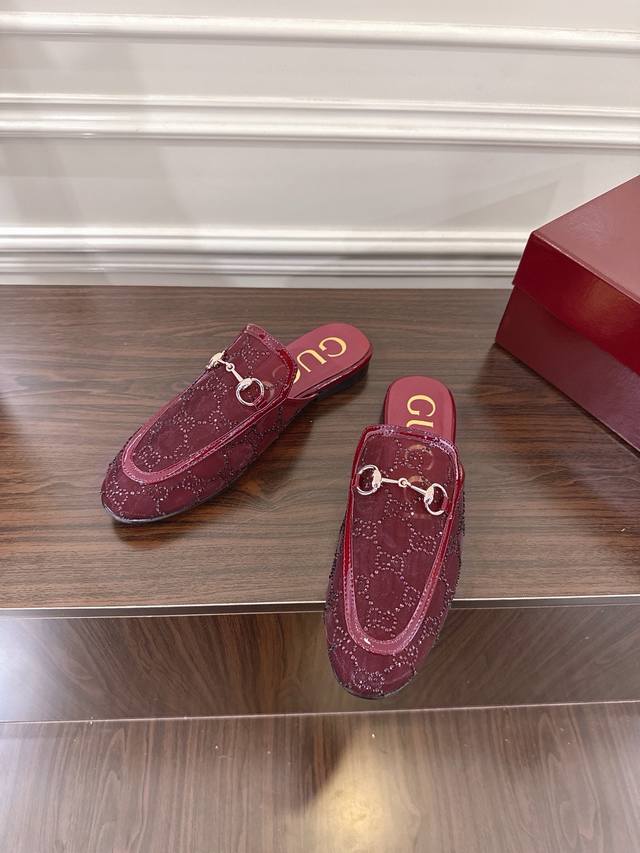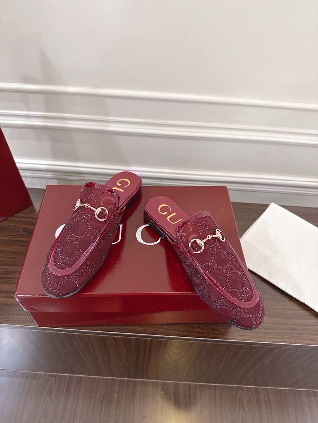 Princetown Series Women's Mesh Crystal Rhinestone Mules. The Princetown series mules feature the brand's classic mesh crystal rhinestones, paired with the iconic gold horsebit buckle for a stunning effect.