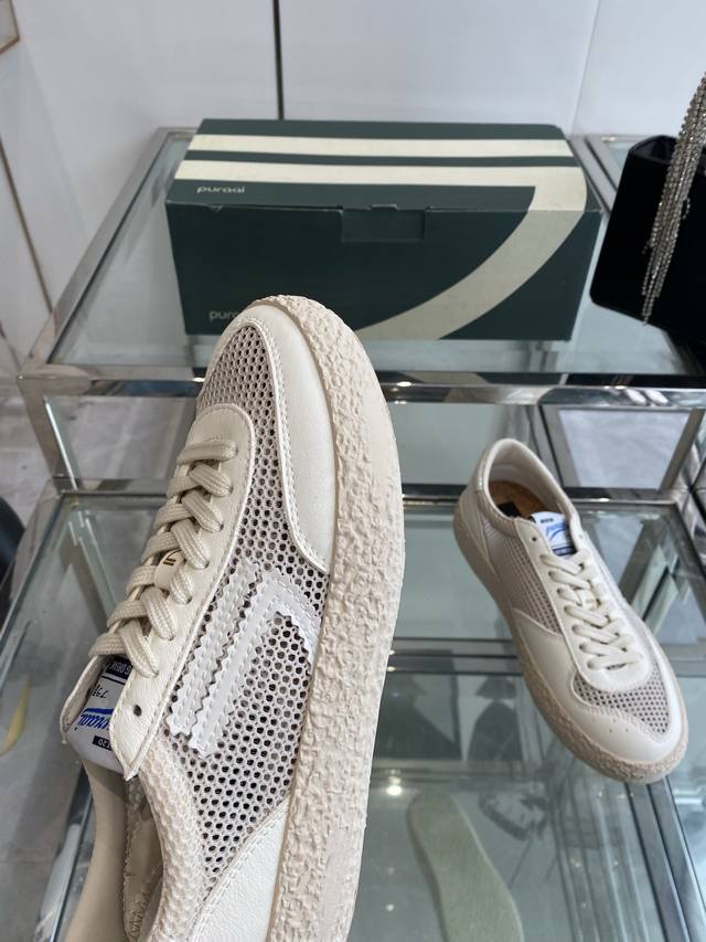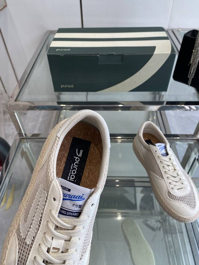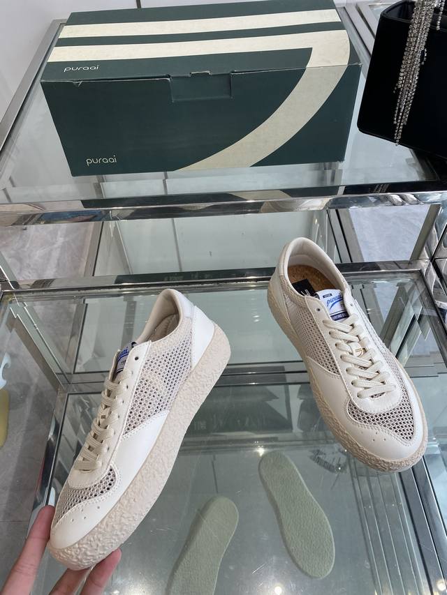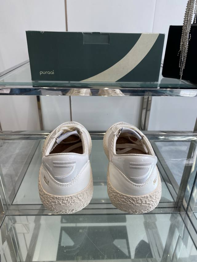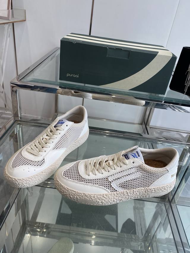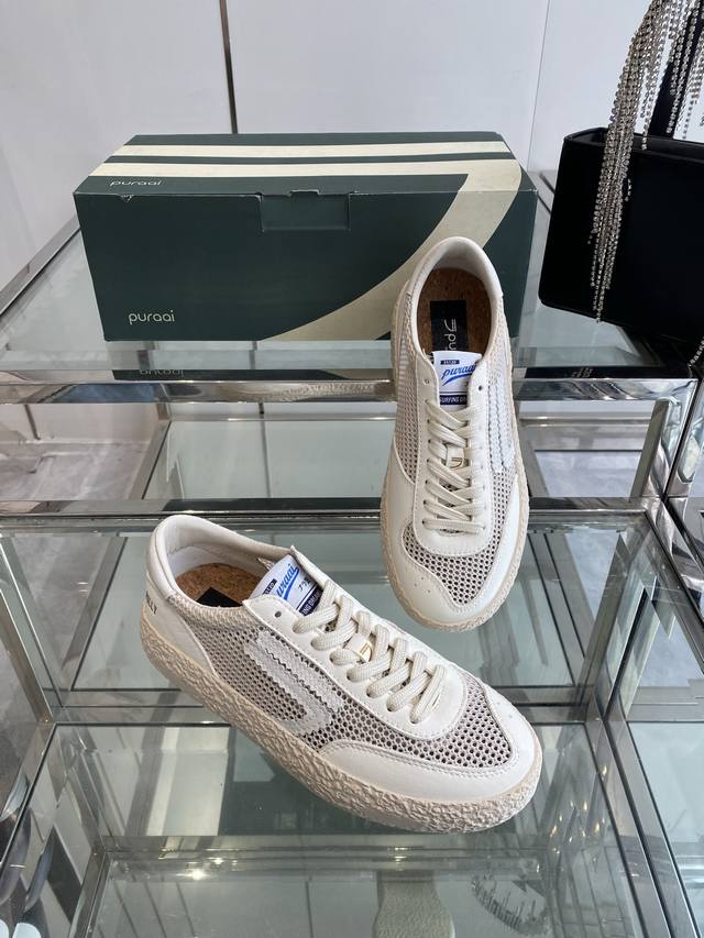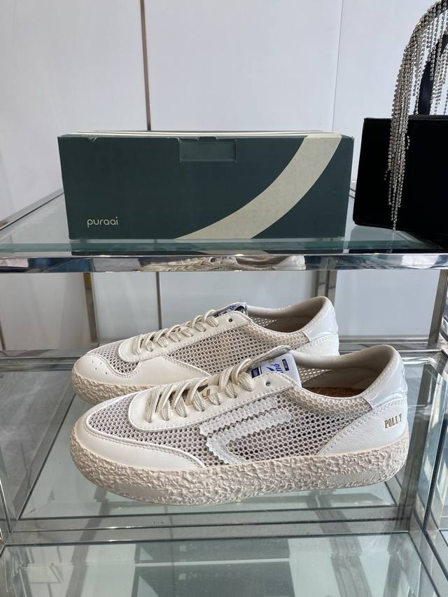 Puraai Polly, a niche streetwear brand, presents its new Spring/Summer 2025 retro sneakers. Featuring styles from Puraai, a trendy brand known for its eco-friendly materials. Soft, breathable, color-blocked casual shoes with a lightweight, thick sole. Upper: Original imported cowhide leather. Insole: Sheepskin. Outsole: Original custom rubber outsole. Sizes: 35-40, 40 made to order.