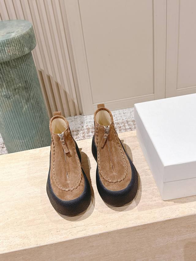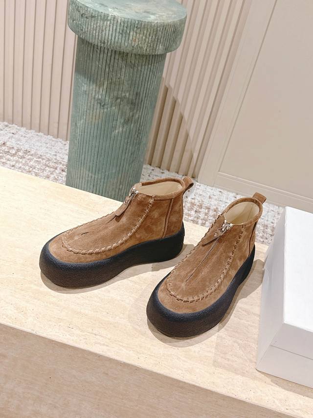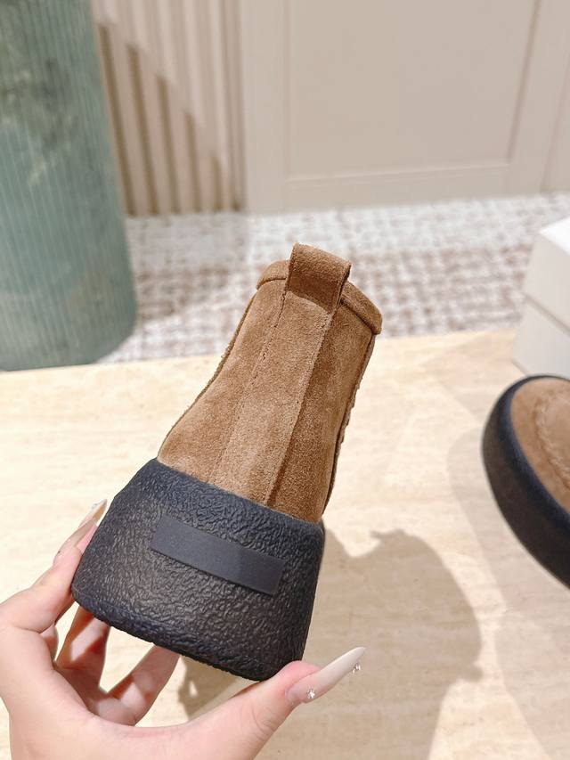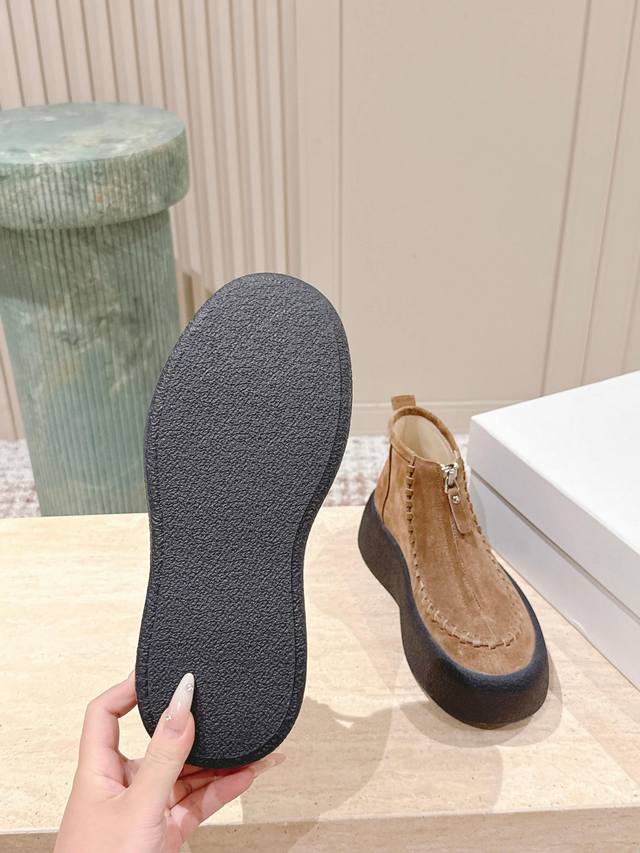 Purchasing-grade suede: The Row 24Ss new fall/winter round-toe elastic slip-on boots. The Row never loses when it comes to creating a sophisticated look. A simple, sophisticated pair. These understated and stylish boots are free of bright colors and busy designs. The 2cm heel and sleek, square toe create a striking, high-end look. Made with custom-made imported calfskin, imported suede, and sheepskin lining, these boots are made with genuine Italian leather. Sizes: 35-40. Customizable, no returns or exchanges.