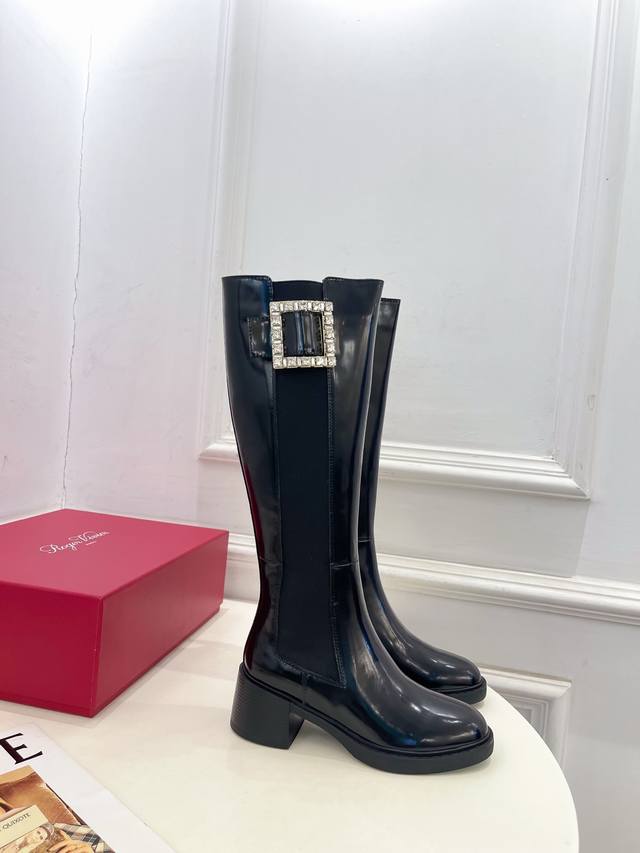 R 25 DDD 2025 Autumn/Winter New Arrival: Square Rhinestone Buckle Chunky Heel Chelsea Boots~ DDD Rv Original replica, classic shoe style with a modern flair, top-quality replica. A must-have for everyday wear and special occasions! DDD Upper: High-quality custom imported cow patent leather, cow patent leather DDD Lining: Imported sheepskin lining DDD Outsole: Original molded rubber non-slip outsole DDD Height: 6cm DDD Sizes: 35-39, 40, 41. Customizable DDD Factory price (pp.): DDD