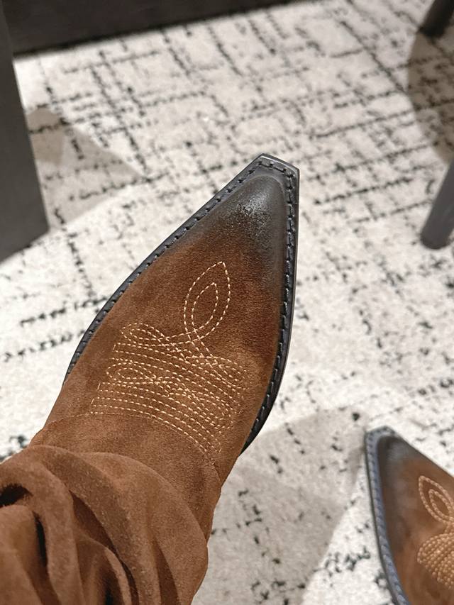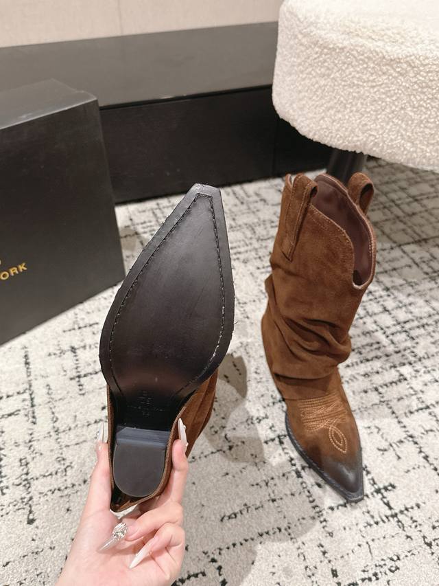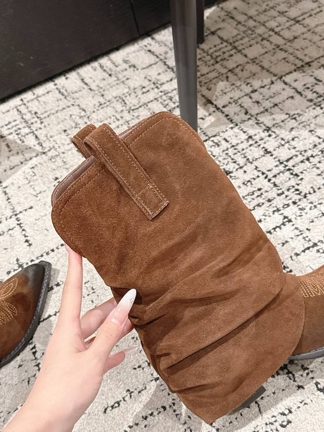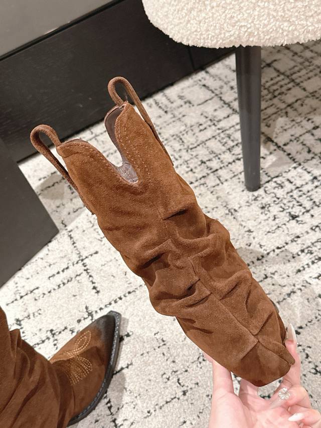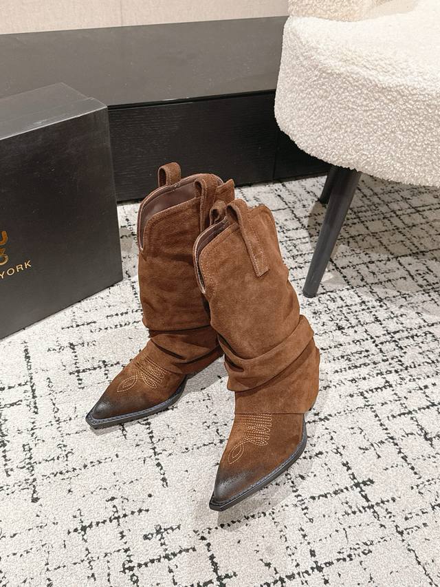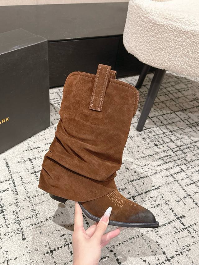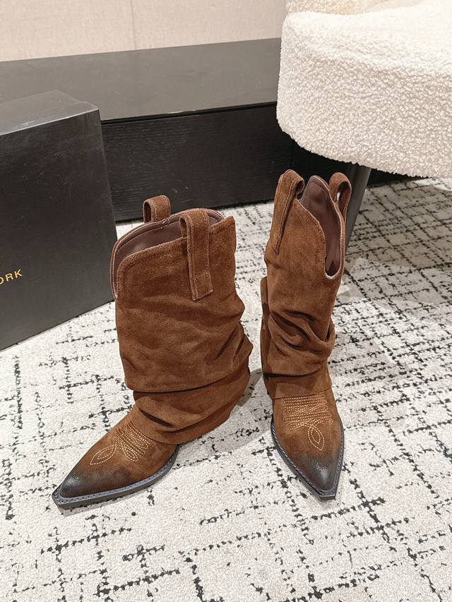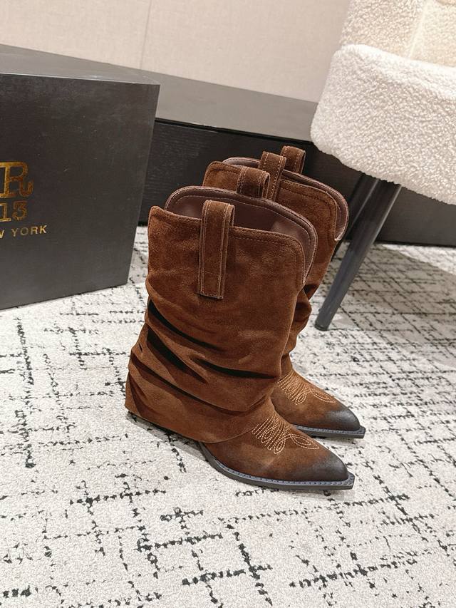 R13 25 Autumn/Winter New Arrival Retro Western Boots The retro suede pleated des
