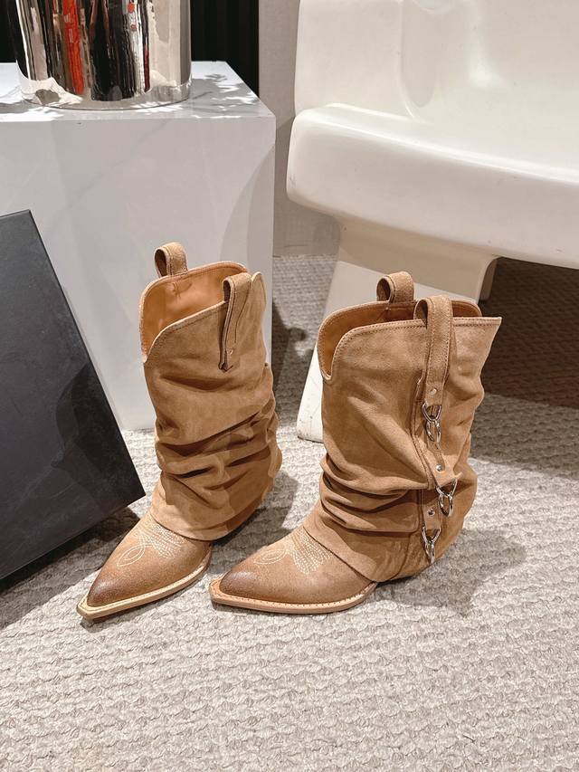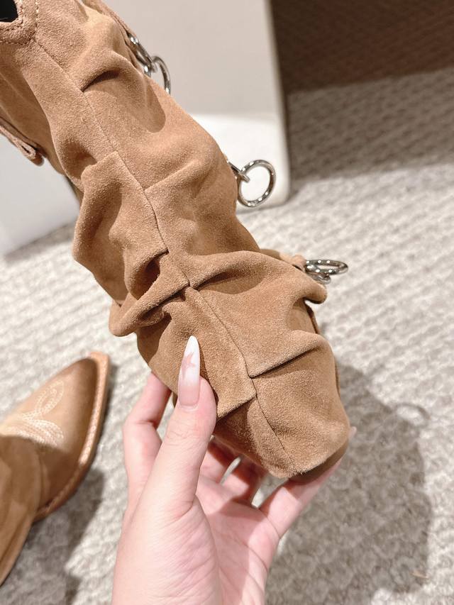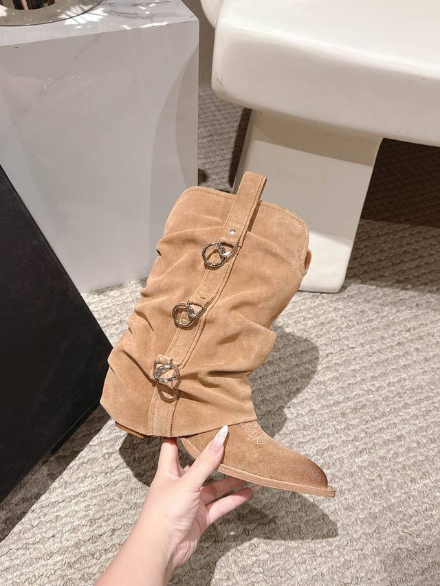 R13 Trendy Autumn/Winter Latest Lazy Style Buckle Strap European and American Style Chunky Heel Boots Western Cowboy Boots DDD Many celebrities and influencers have recommended these boots. Multiple ways to wear them. The straps are adjustable, allowing for length, looseness, or wrinkles. The boot body has a relaxed, casual feel, while the metal buckle strap adds a cool and edgy vibe. Very fashionable and wild, these boots exude an untamed aura. You'll be the center of attention wherever you go. The upper is made of imported cow suede, the insole is made of imported sheepskin, the heel height is 4.5cm, and the outsole is made of imported Italian thickened genuine leather. Sizes: 35-41 (40, 41) Custom orders are not returnable. DDD