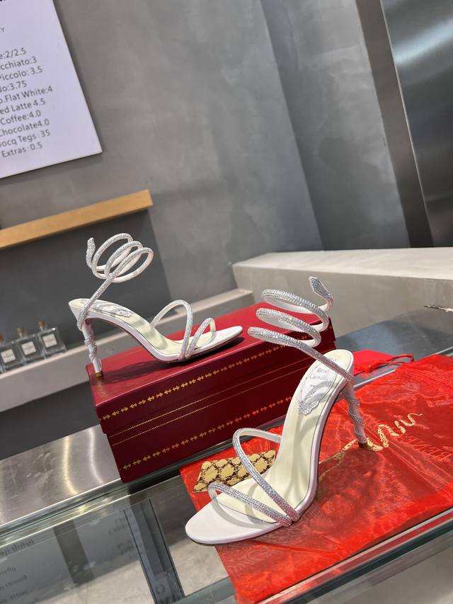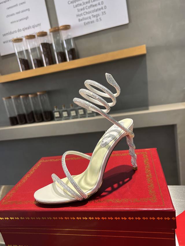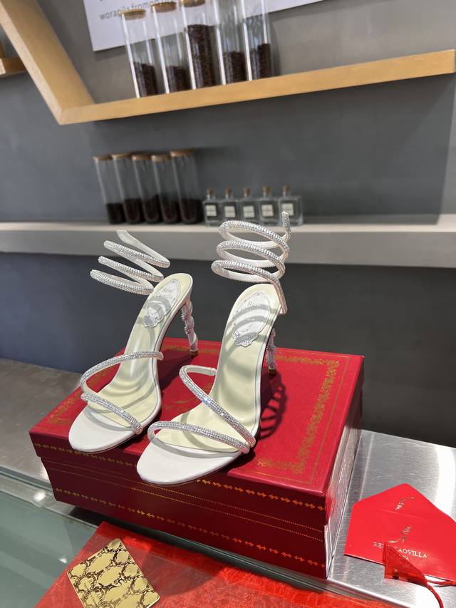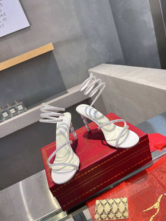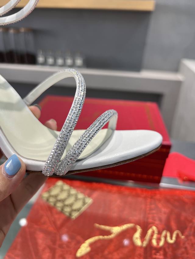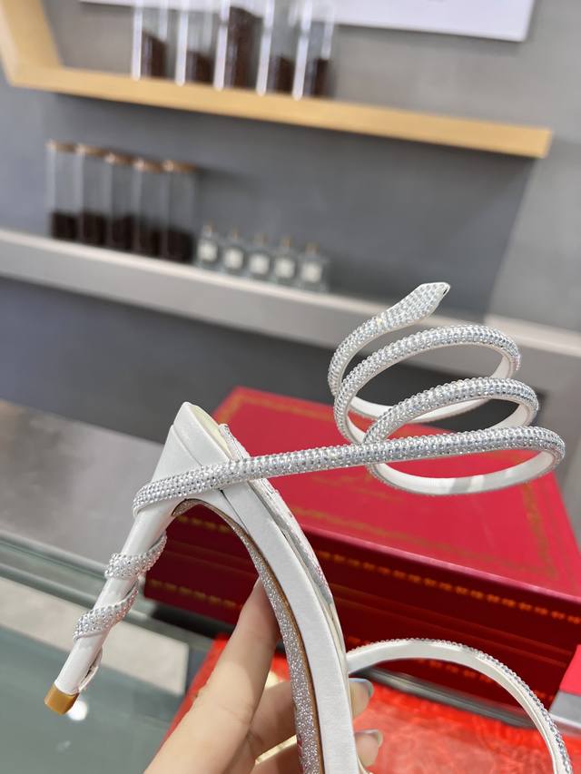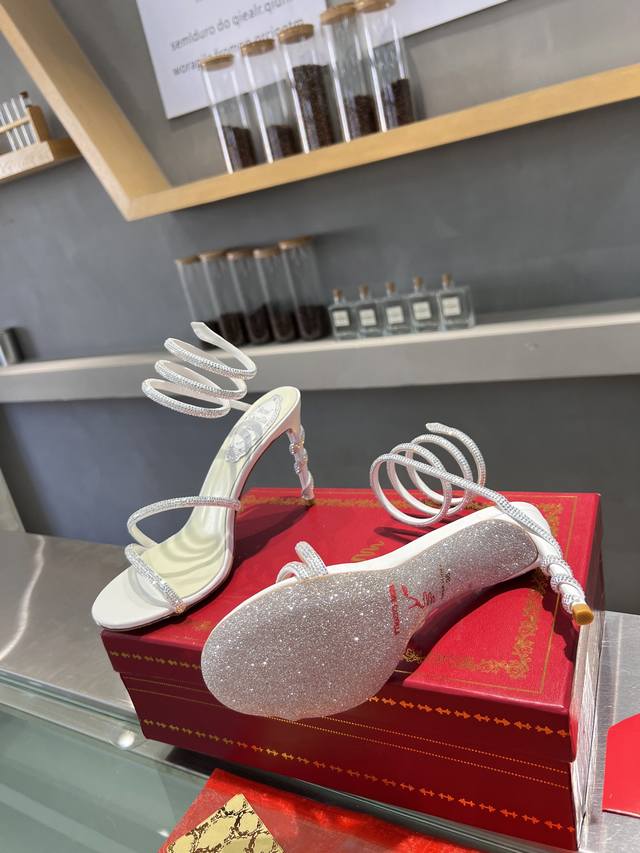 RCS Heavy-Duty Rc Snake-Shaped Popular Cleo Series, Crystal Wrapped Anklet High-Heeled Sandals. Simple yet subtly intricate, the entire upper shimmers and sparkles under a little light. Perfect for both warm, lively parties and dimly lit, intimate occasions. High-quality spring/summer new arrival, a captivating and luxurious top-tier item, a heavyweight flagship piece of the year! Material: Imported silk + Cleo rhinestones Lining: Imported silk sheepskin lining Outsole: Original Blingbling shimmering silver leather sole and shimmering silver gum sole Heel Height: Approximately 9.5cm Color: Gold, Black, Silver, White Size: 35-39 34 40 41 42 43 (Custom orders are non-refundable, standard sizes available) Packaging: Comes with a cloth bag, card, and spare top. Rc Hot Selling Item