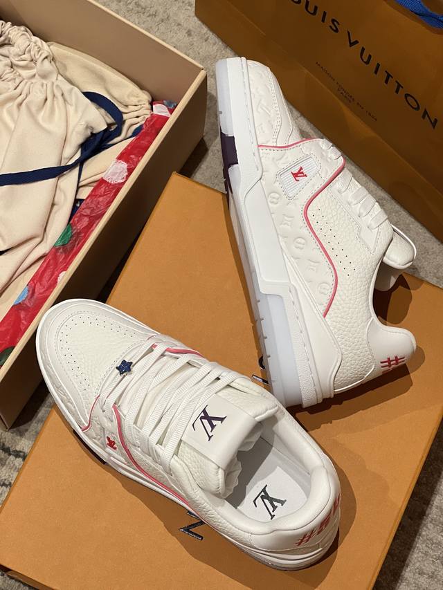 Real-shot, rose-red trim, top-quality 1V Trainer 25Fw, Cruise Limited Series. Original, precise CP! Infinitely close shoe shape, exquisite craftsmanship. Factory standard package includes 20 buckles (as shown in the real-shot image), additional buckles available for 10 extra. As always, high-quality goods! Original materials! Original lychee-textured cowhide leather, original PU material, original breathable mesh lining, original custom-molded TPU outsole. Size: Women's 35-40 (40 is custom-made, no returns or exchanges); Men's 39-46 (45, 46 is custom-made, no returns or exchanges). Price: Gift box, exquisite packaging, and matching tote bag.