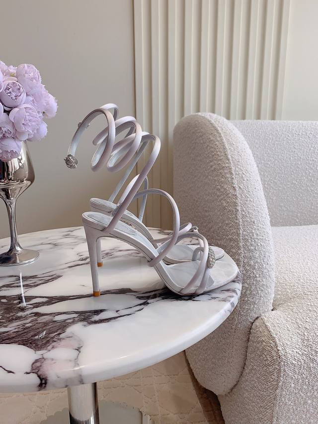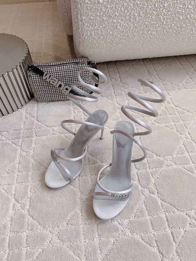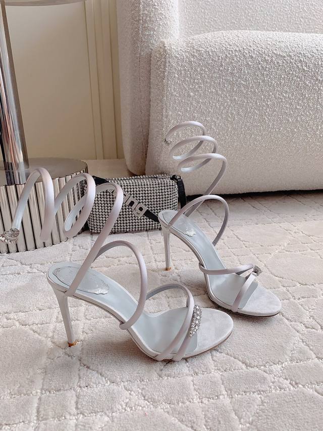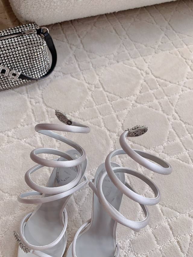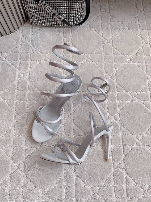 Ren* Caovill*'s new snake-shaped rhinestone high-heeled sandals are always full of fairy spirit. The snake-shaped strap wraps around the ankle and shimmers exquisitely, showing unique details and dazzling marks.
