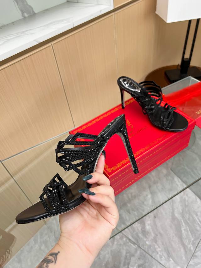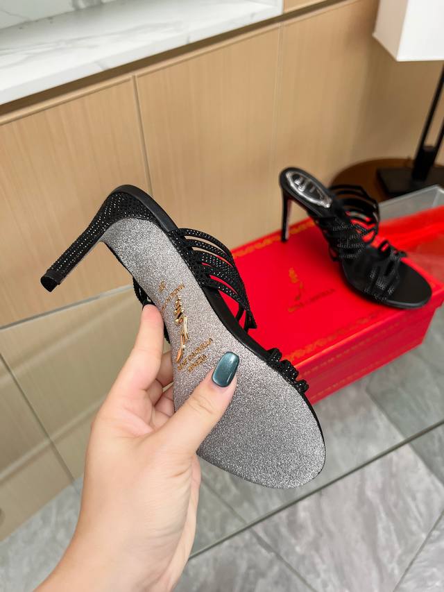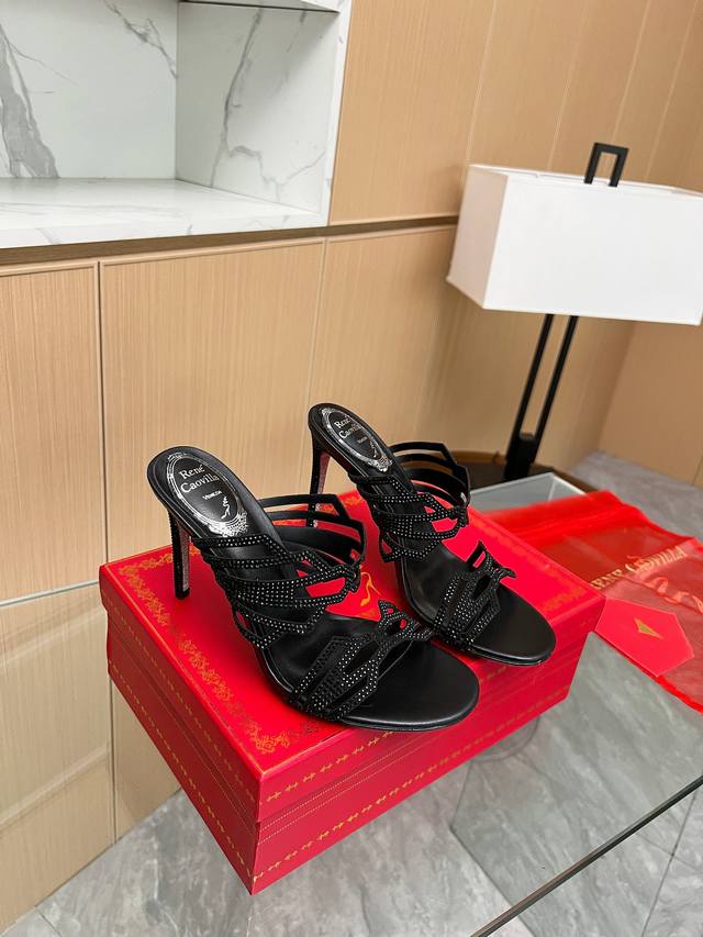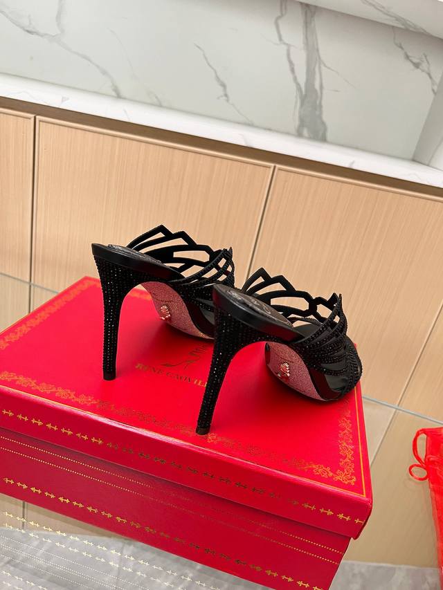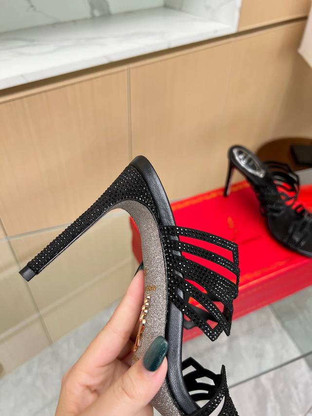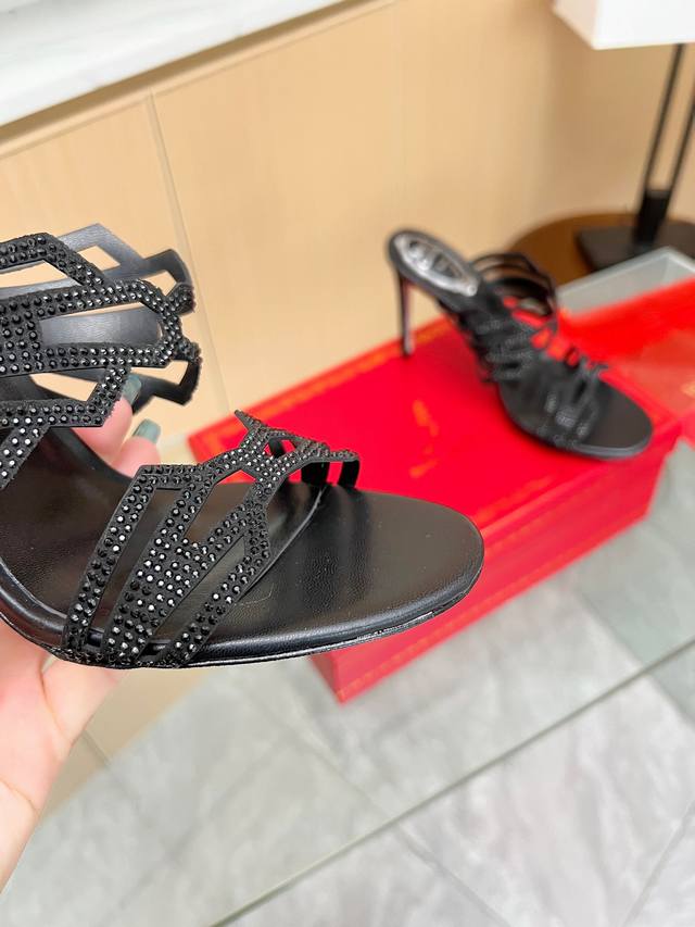 Rene Caovilla Rc High-Heeled Open-Back Sandals, Heavy-duty Rc Crystal Crystal Series, Fully Diamond Hollow-Out Rhinestone Inlaid Upper Unique Design Women's Open-Heel Wedding Shoes DDD Carefully crafted, beautiful, charming, and sexy all at once DDD Exclusive best-selling style with fully private mold DDD Original development, super accurate and sparkly, even more beautiful in person DDD 1:1 custom quality details can be completely compared DDD Material: Deer antler upper with hot-stamped rhinestones DDD Lining: Imported pearlescent sheepskin lining and insole DDD Outsole: Original Blingbling shimmering silver genuine leather sole DDD Heel height: 7.5Cm, 9.5Cm (two heel heights) DDD Color: Black, Red DDD Size: 35-39 34 40 41 42 43 Custom orders are non-refundable and non-exchangeable DDD Packaging: Comes with cloth bag, card, spare sheet DDD