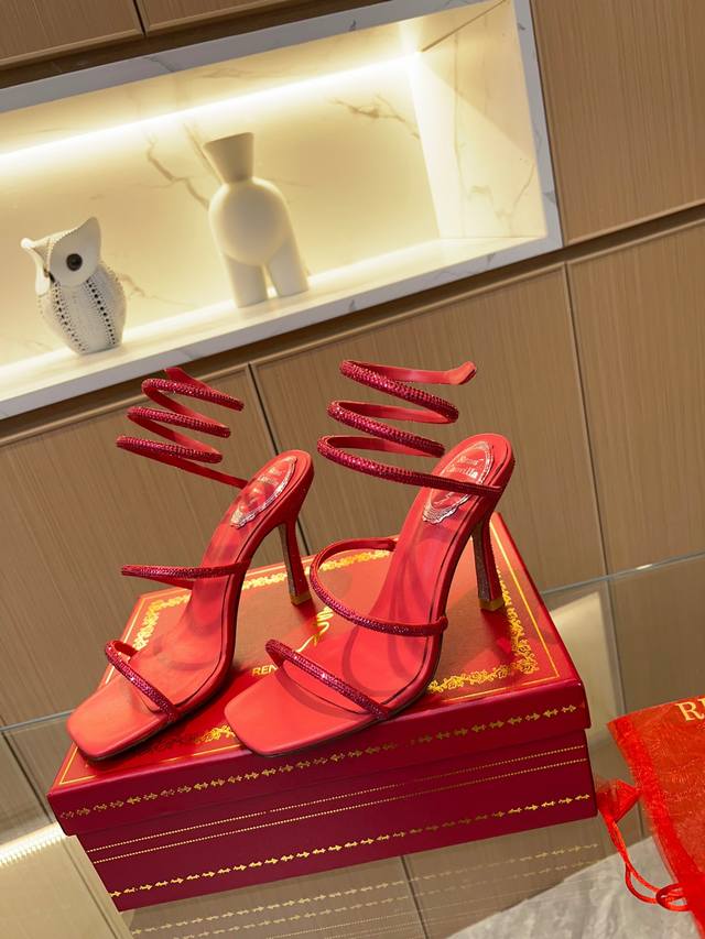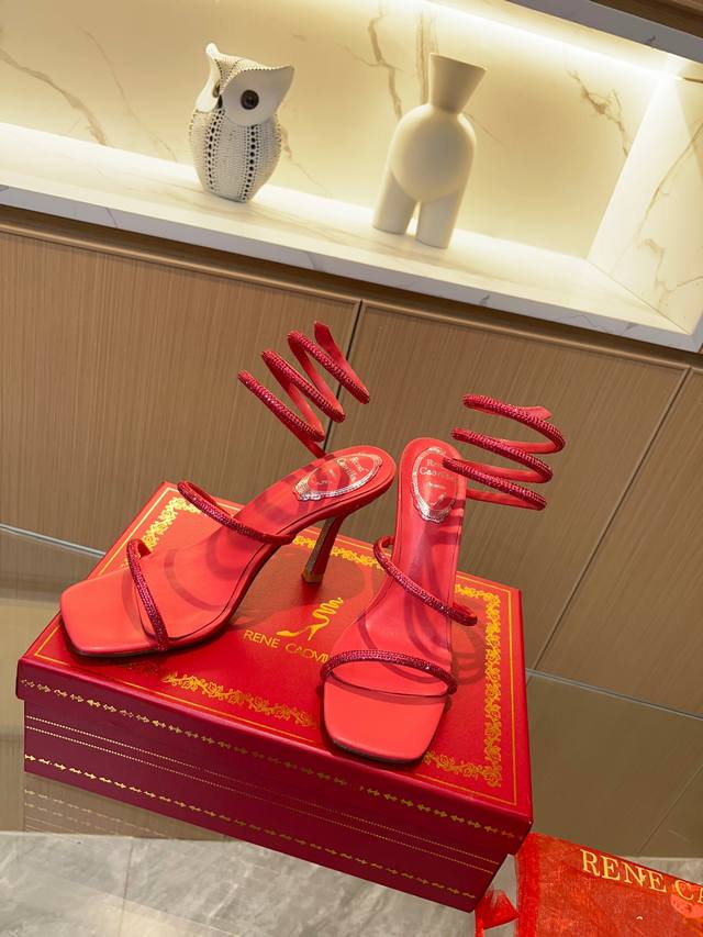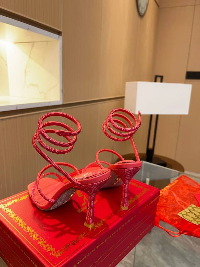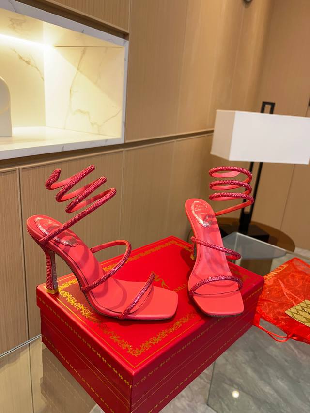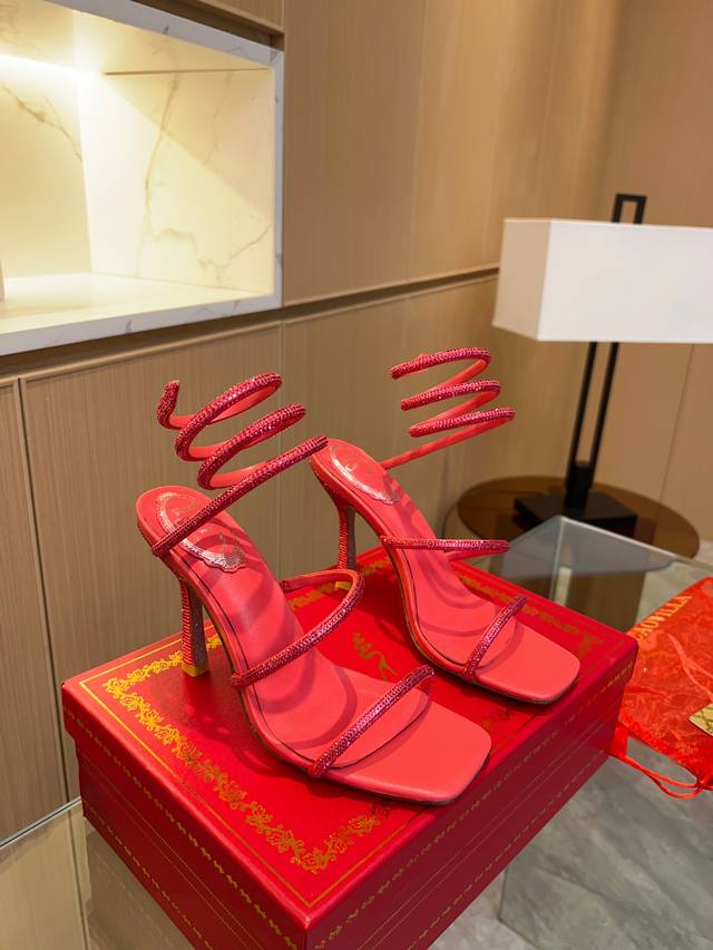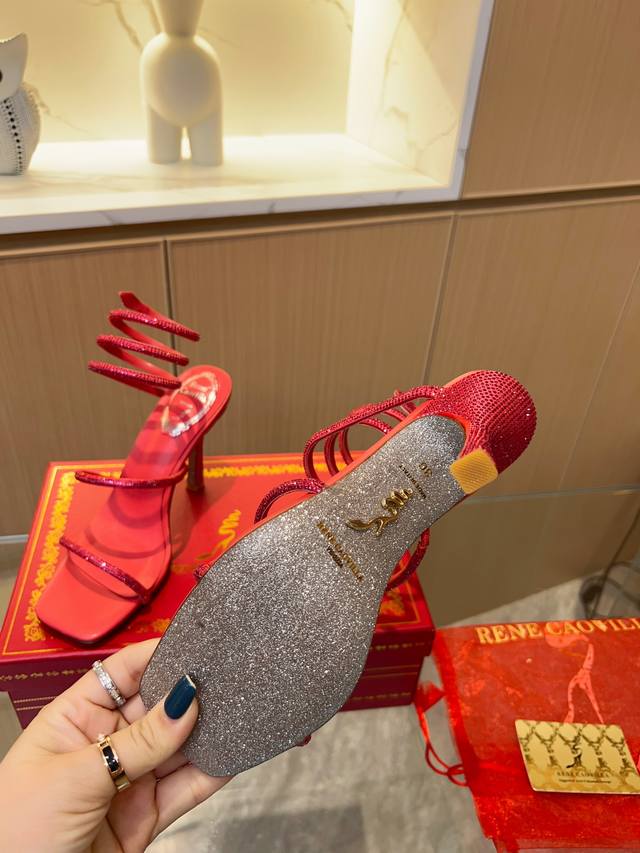 Rene Caovilla's latest Rc high-end version of the wildly popular Spring/Summer Cleo series, a glamorous and luxurious top-tier item. The square-toe, small block heel, and rhinestone design are absolutely stunning! These globally sold-out rhinestone-strap sandals are a hit with celebrities, livestreamers, and influencers, exuding fashionable elegance. Thousands of rhinestones are neatly arranged, encircling the ankle for a sexy and alluring femininity. Custom-made from the original boutique design, this piece is meticulously crafted using imported machinery and exquisite handwork to create a three-dimensional arched rhinestone strap for perfect quality. The goal is to ensure that every girl who owns this item retains the most beautiful romantic memories, radiating ethereal beauty. Classic, noble, and elegant. Material: Original custom-grade silk + Clio crystal glass rhinestones. Lining: Imported sheepskin lining and insoles. Outsole: Original bling-bling shimmering silver genuine leather sole. Heel height: Approximately 9.5cm. Colors: 10 colors available. Size: 35-39, 34, 40, 41, 42, 43 (custom orders are non-refundable and non-exchangeable, standard size). Packaging: Comes with a cloth bag, card, and spare rhinestones.