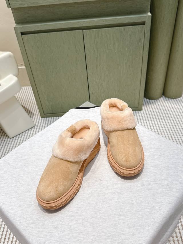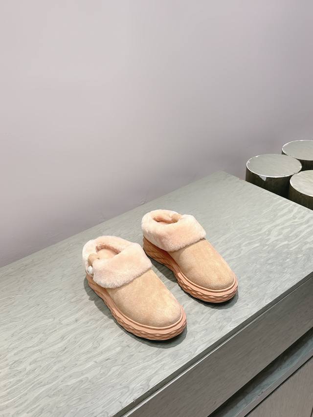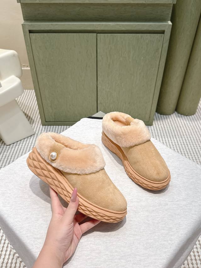 Retail Item (DDD) Jimmychoo 2025 Autumn/Winter New Thick-Soled Wedge Fur Slippers (DDD) These slippers feature a shearling design, with a soft leather upper and a thick plush lining for maximum warmth. The rubber sole is non-slip, making them suitable for indoor or short outings in autumn and winter. They complement various home decor styles and accommodate different foot shapes. Pair them with sweaters and casual pants to easily create a warm and cozy home atmosphere