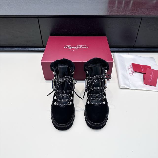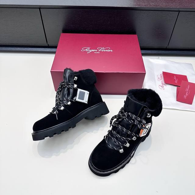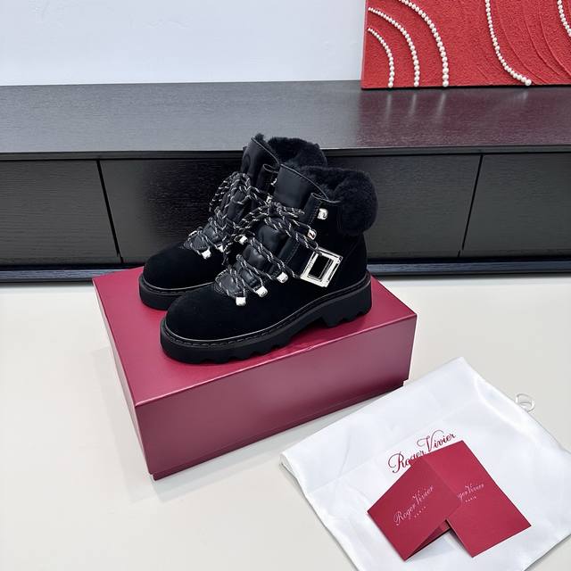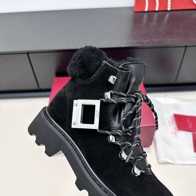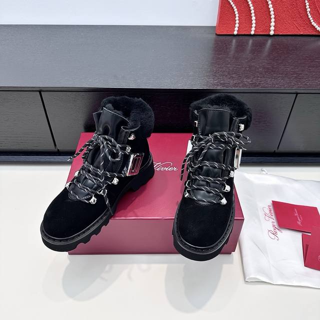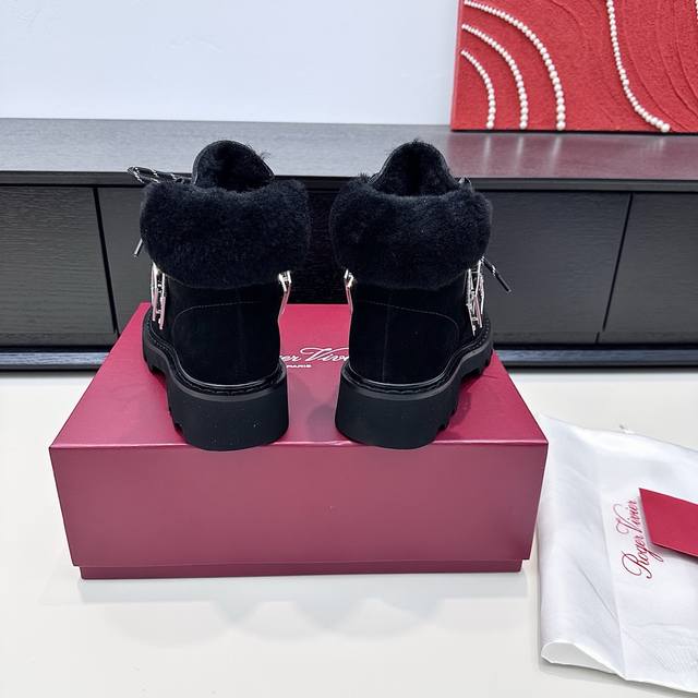 Retail Purchase Version DDD 2025 Winter New Vivi'rangers Truck Series Metal Buckle Wool Ankle Boots Warm Martin Boots DDD When the biting cold wind meets Roger Vivier's winter romance, these snow boots become the perfect embodiment of style and warmth. The suede texture is combined with a plush collar, the iconic metal square buckle highlights the details, and the thick sole allows for effortless movement between snow and city, ensuring every step is filled with French luxury warmth, turning the winter chill into a refined accent. DDD True to size: 35-41 DDD