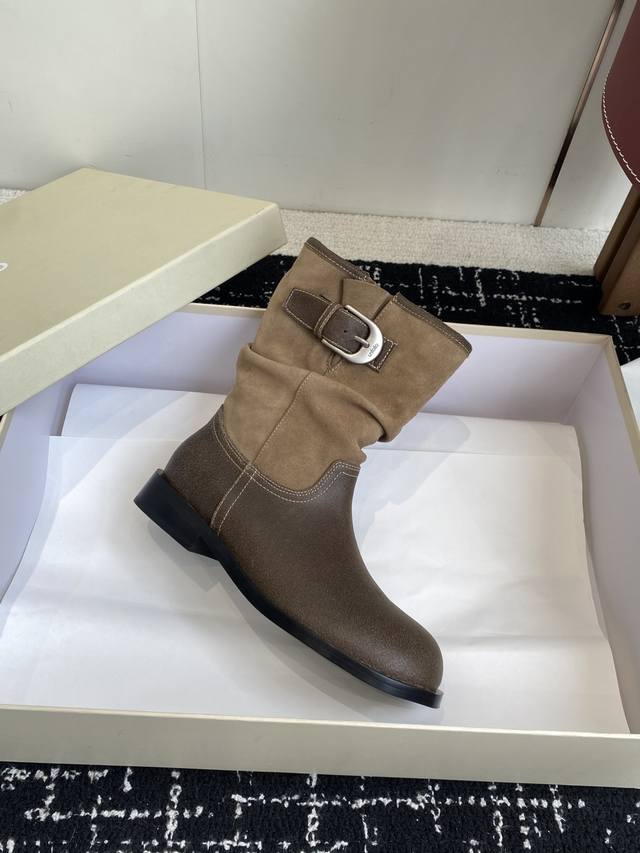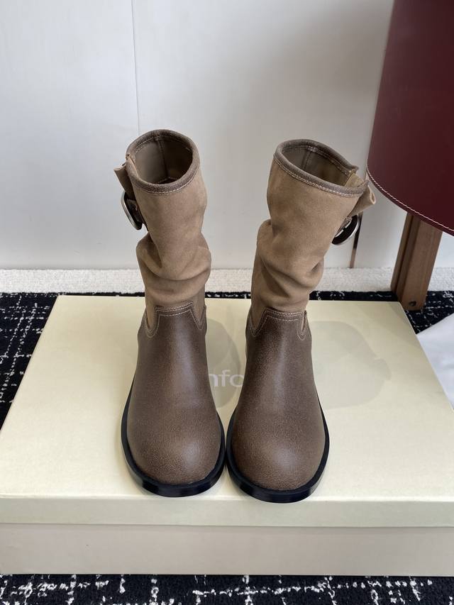 Retail Quality DDD Unfolio 2025 Autumn/Winter New Buckle Slouch Boots DDD Calling them the best-looking slouch boots of the year is no exaggeration. Retro, versatile, and effortlessly simple. DDD The upper is made of imported cowhide suede, with a sheepskin lining and an Italian imported injection-molded outsole. DDD Size: 35-41 40 41 Made to order, no returns or exchanges. DDD