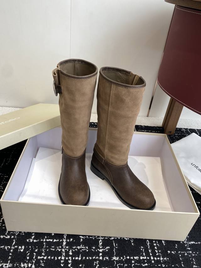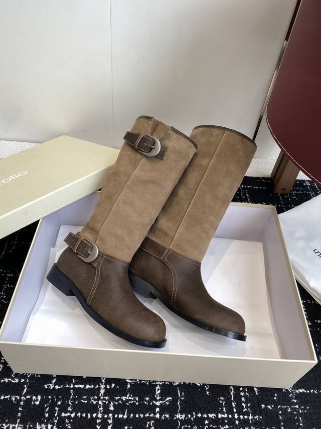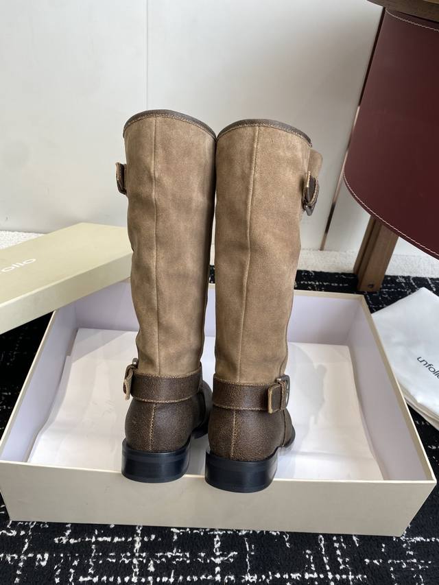 Retail Quality DDD Unfolio 2025 Autumn/Winter New Buckle Slouch Boots/Knight Boots DDD Calling them the best-looking slouch boots of the year is no exaggeration. Retro, versatile, and effortlessly simple. DDD The upper is made of imported cowhide suede, with a sheepskin lining and an Italian imported injection-molded outsole. DDD Size: 35-41 40 41 Made to order, no returns or exchanges. DDD