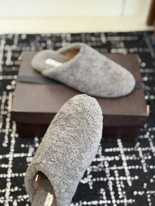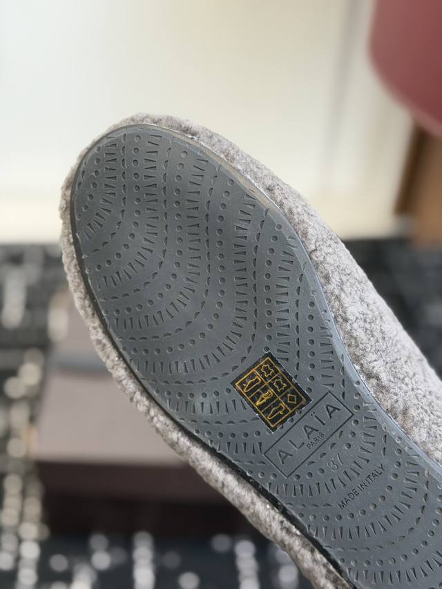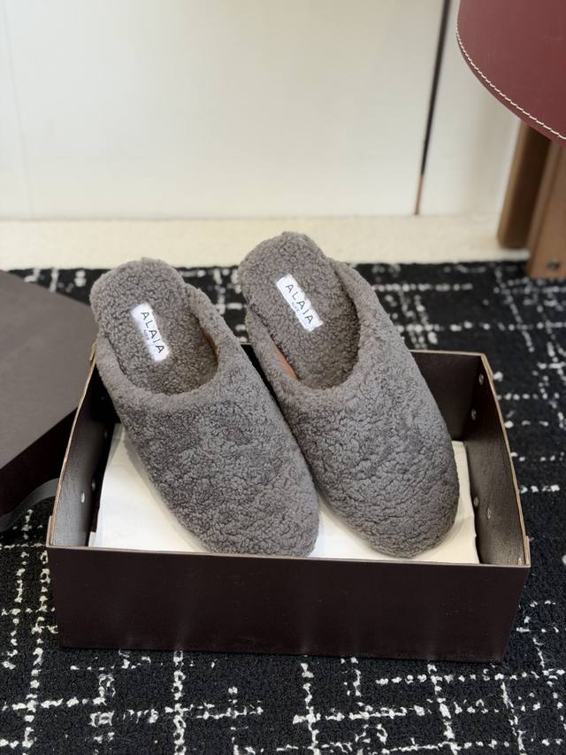 Retailer-grade DDD 25Fw Autumn/Winter New Alaia Wool French Ballet Flats, Vintage Style Wool Mule Slippers, Flat Furry Shoes DDD Made of wool, soft and fluffy to the touch, with excellent warmth, while the interior is often lined with fine leather, balancing comfort and luxury. The shoe shape is a round-toe mule slipper, without excessive decoration, only adorned with the brand label, suitable for various styles, the colors are mainly low-saturation colors, with a low-key and luxurious feel. DDD The brand's iconic small label logo, combined with the simple shoe shape, continues Alaa's consistent "minimalist luxury" style; the shoe shape is highly accommodating to the foot shape, fitting comfortably. It can be used as a house slipper or a "lazy shoe" for a quick outing, combining warmth and fashion, a comfortable item for autumn and winter. DDD Upper: Wool lining; Insole: Sheepskin; Outsole: Original molded rubber outsole. DDD Size: 35-42, 40, 41, 42 (Made to order, no returns or exchanges).