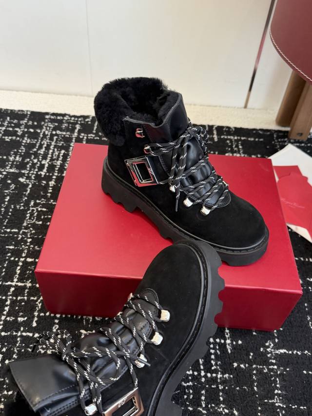 Retailer-grade DDD RV 25 Autumn/Winter New Arrivals! New furry boots with a rounded upper DDD and a 5cm heel. The shearling texture instantly elevates the wintery vibe DDD Warm, stylish, and perfect for the entire autumn and winter~_The lining and opening are made of soft, fluffy wool, making you feel like you're walking on clouds DDD Excellent warmth without being stuffy. The most eye-catching feature is the small square buckle on the upper, which is incredibly sparkly DDD Size: 35