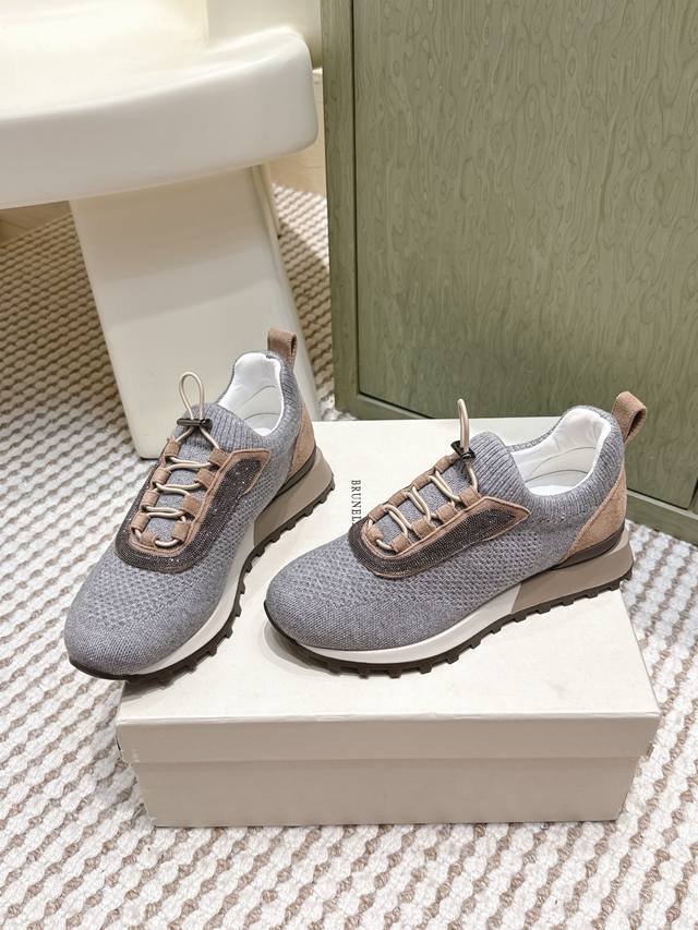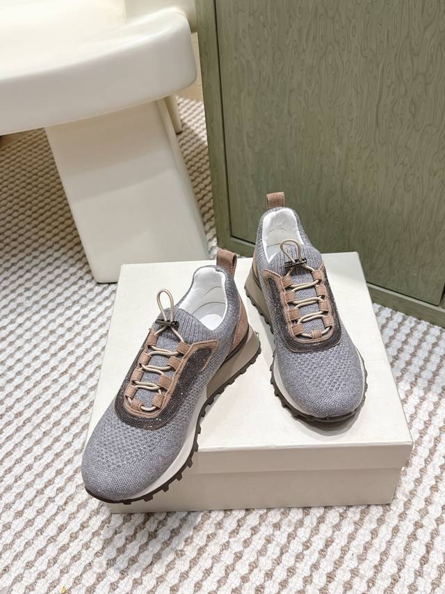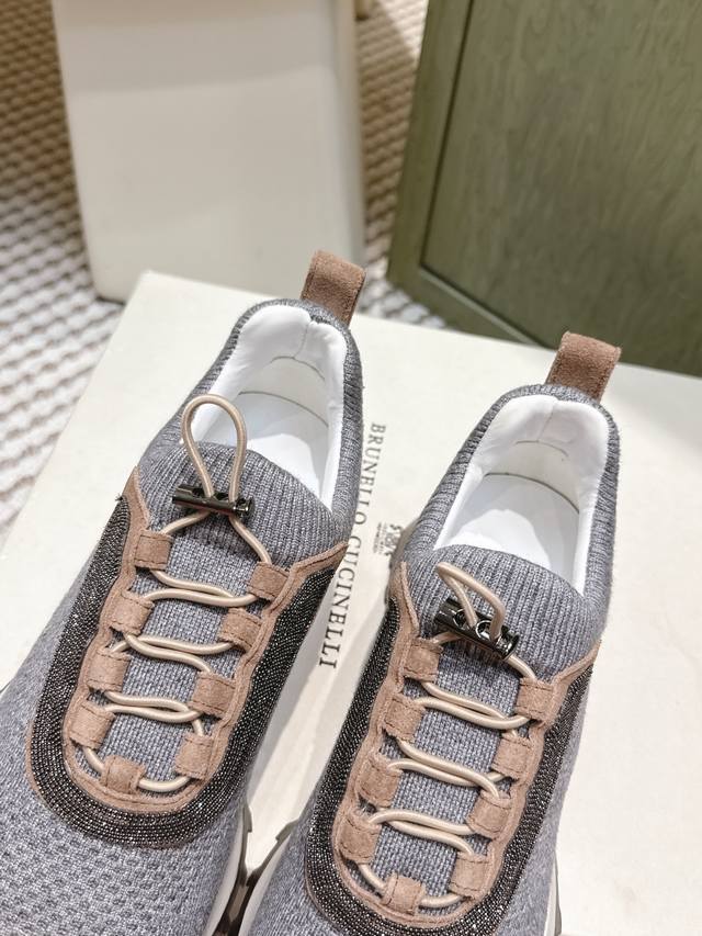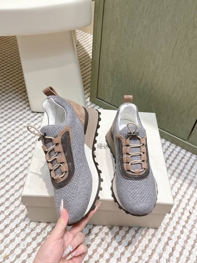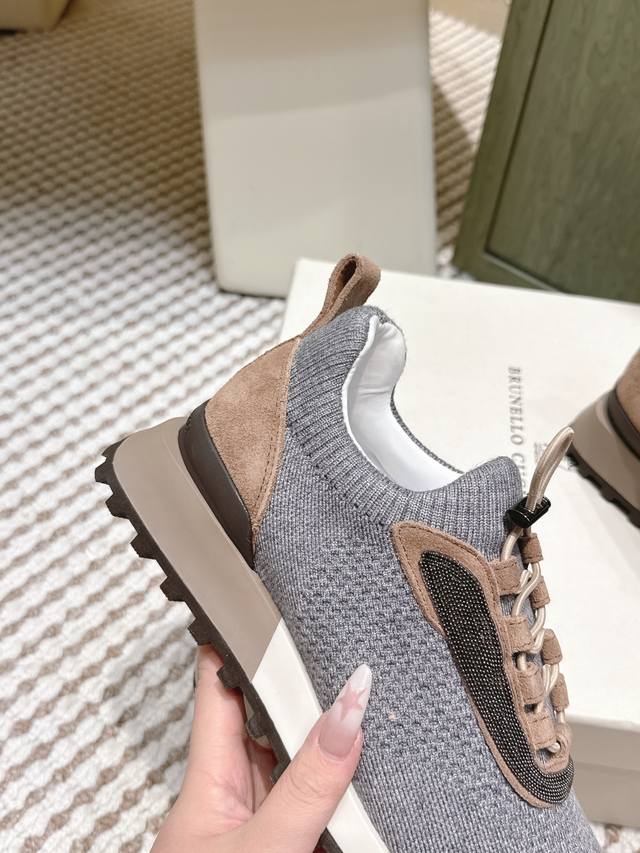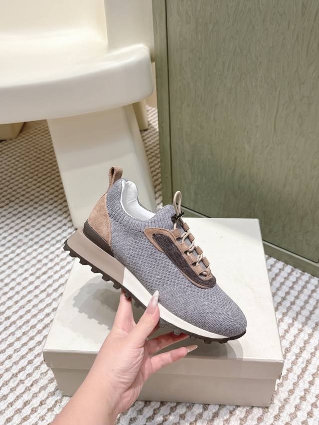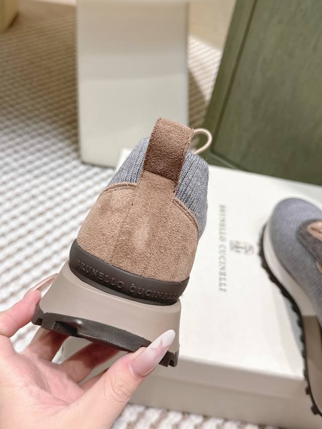Retail-grade DDD Brunellocucinell *25S Early Autumn New Gentle Retro Style Knitted Casual Dad Shoes DDD The core visual lies in the retro silhouette under minimalism. The designer has given the iconic dad shoe silhouette an "elegant purification." It retains core elements such as the layered midsole and rounded toe, but through smoother, more restrained lines, it completely abandons the complexity and exaggeration of the original, presenting a calm and modern sculptural feel. DDD The knitted sock-like upper is its soul, replacing traditional leather patchwork, giving the shoe a unique minimalist look and a tailor-made fit. The overall aesthetic is understated luxury. The shoe body uses neutral and gentle tones, oatmeal, dark gray, or charcoal black, consistent with the brand's iconic earthly paradise color philosophy, easily blending into any high-quality wardrobe. It can be paired with cashmere casual trousers and custom-made jogging pants for ultimate comfort and a luxurious home feel; or combined with linen shirts and lightweight knitwear for a relaxed and elegant look reminiscent of a world traveler. It's the perfect bridge connecting sports and everyday life, casual and semi-formal occasions. Material: Knitted fabric; Lining: Sheepskin lining; Outsole: Rubber outsole; Size: 35-39; 40, 41, 42 (Custom orders are non-refundable and non-exchangeable).