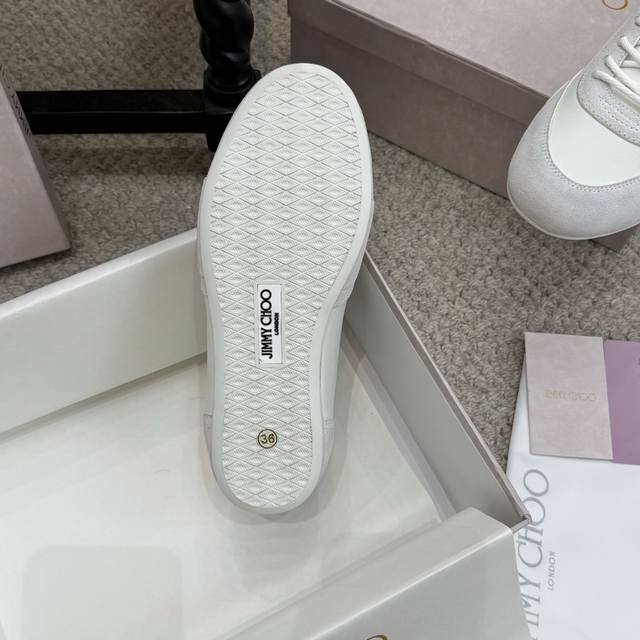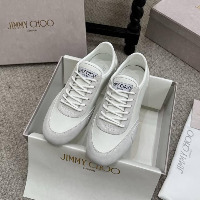 Retail-grade mesh/leather/Jimmy Choo 2026 Spring/Summer new lace mesh breathable color-block casual sneakers/sneakers. Made with Diamond cowhide leather and lace material. The sole features the brand's signature Diamond-cut design. Futuristic design with exaggerated proportions for a comfortable fit and added height. Lightweight, agile, and comfortable fit. Size: 35-40.
