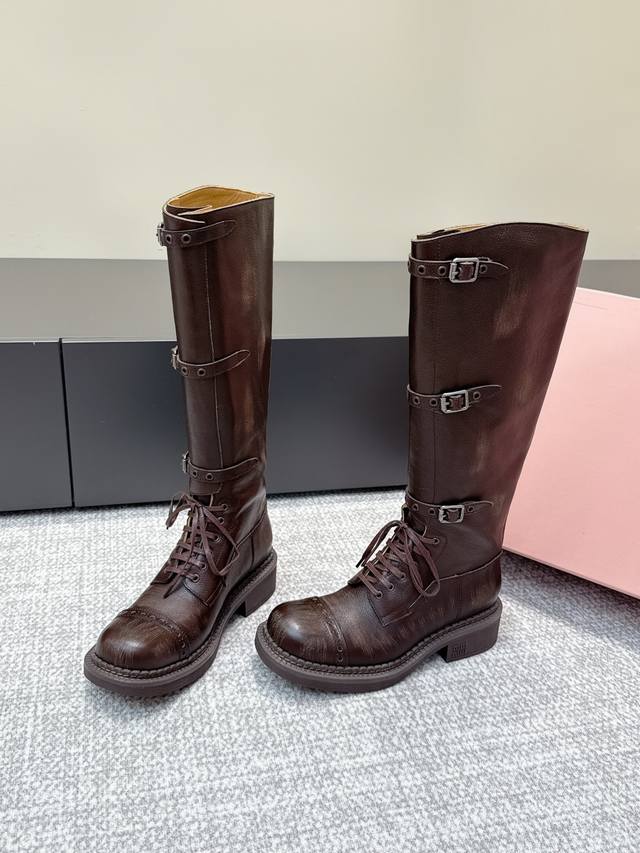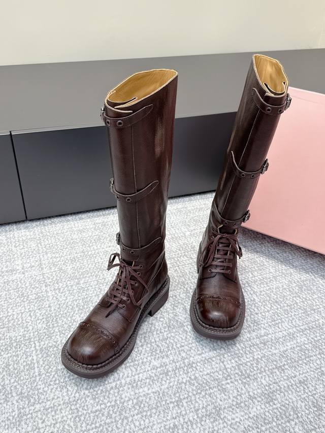 Retail-grade #MiuMiu Autumn/Winter Newest Martin Boots, Completely Original 1:1 Replica, Super Authentic Fit, Latest Fashion Design, These boots are a hit online, looking cool and stylish on the feet. The unique design at the boot shaft is eye-catching and flattering, slimming the legs. Grained calfskin leather, sheepskin lining, original mold, outsole. Size: 35-39. Size 40, custom-made, no returns or exchanges.