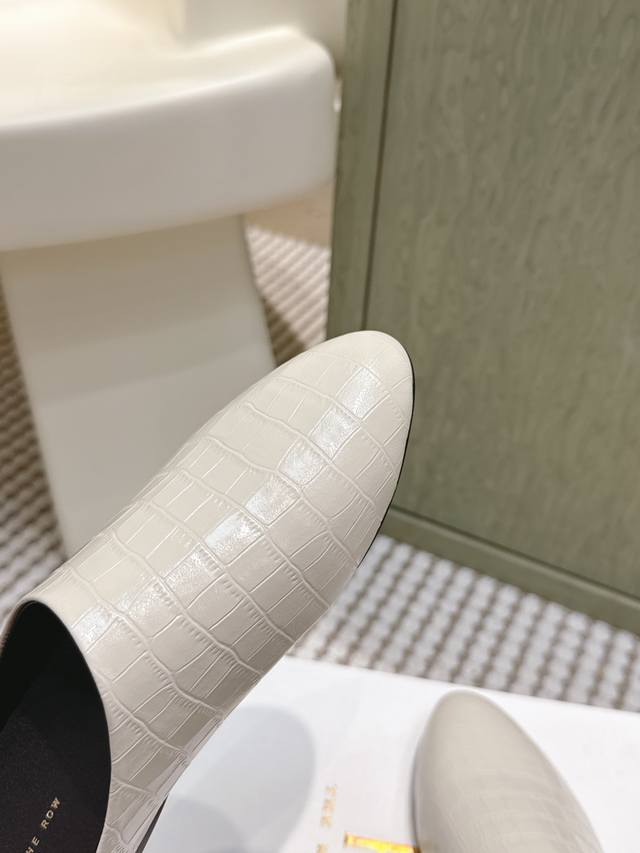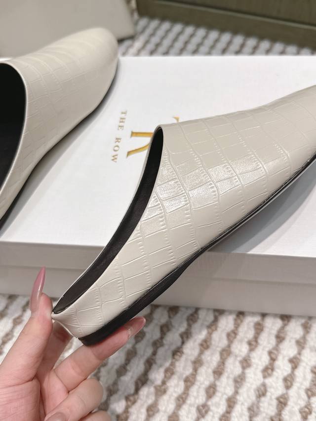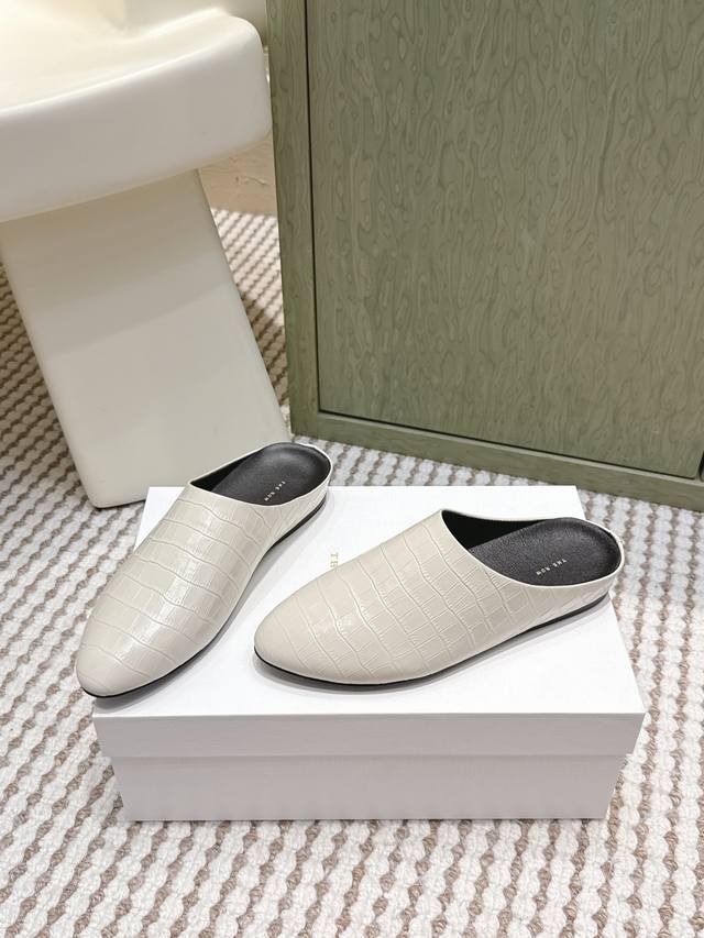 Retail-grade DDD The Row 25Ss embossed cowhide flat mule slippers DDD The embossed leather features a clear texture and delicate luster, presenting a luxurious feel while adding visual depth and a retro charm through the embossed design. DDD Continuing the brand's iconic minimalist aesthetic, these pointed-toe mule slippers feature smooth, clean lines that flatter the foot shape and elongate the legs, making them suitable for various occasions such as commuting and leisure. DDD The shoes feature a soft lining and a contoured design that conforms to the shape of the foot. The backless mule structure makes them easy to put on and take off, and they are not prone to pressure even after long periods of wear. Accurately conveying The Row's "understated luxury" design philosophy, the combination of minimalist silhouette and high-quality materials makes them a representative shoe style that is both practical and recognizable. DDD Size: 35-40, size 40 is custom-made and non-refundable DDD