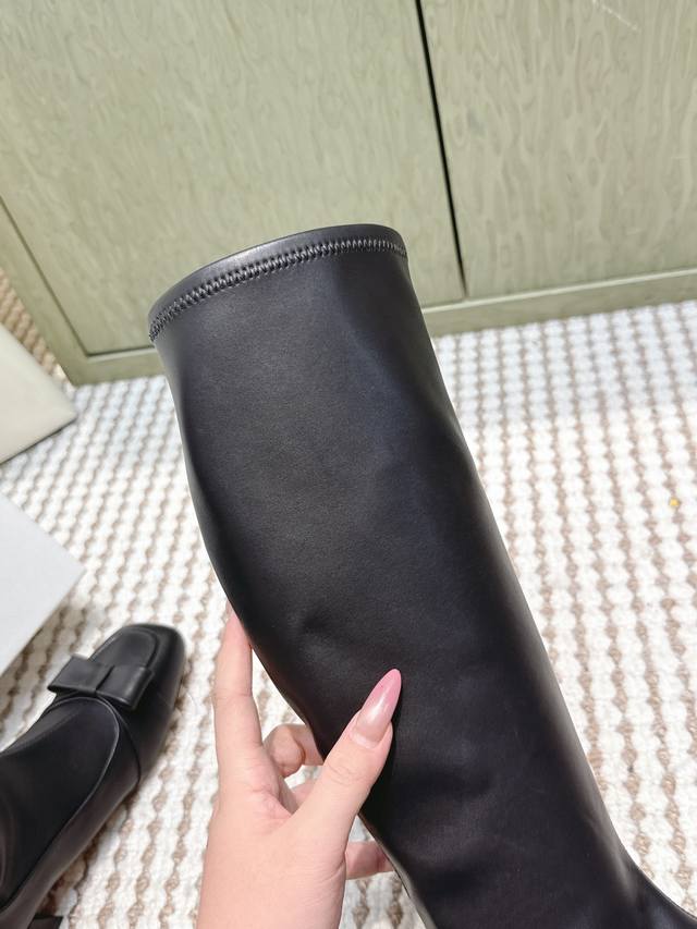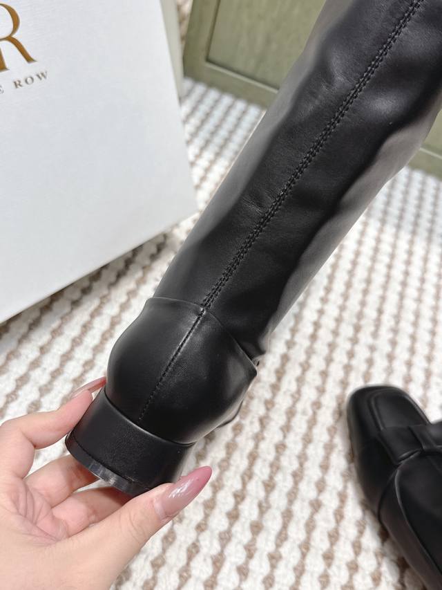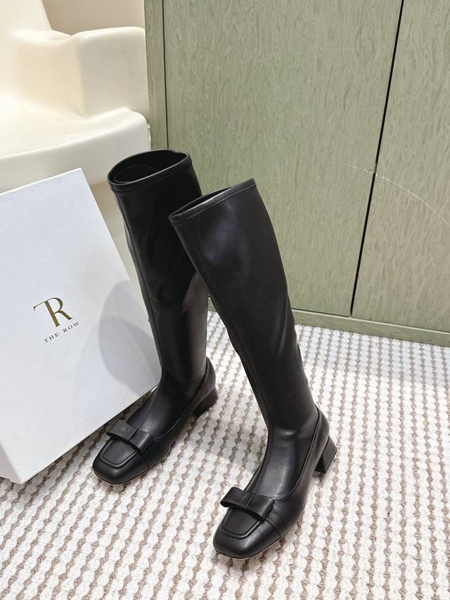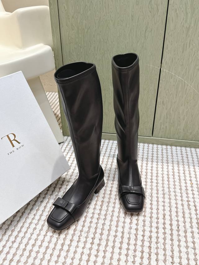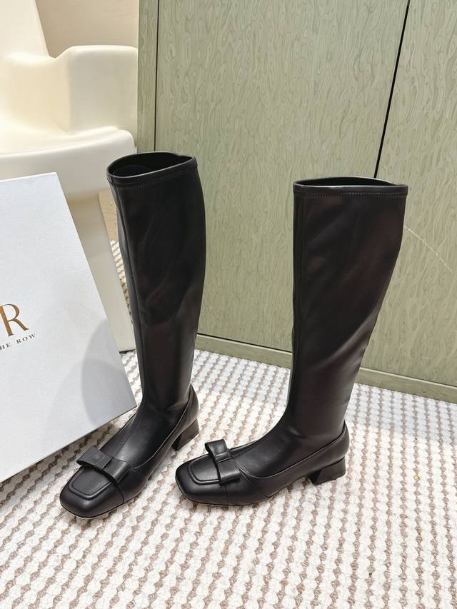 Retail-grade DDD The Row 25Ss Retro Bow-Tie Thigh Boots DDD Continuing the brand's "minimalist luxury" style, the boots are long and flowing, conforming to the leg lines and visually elongating the legs, easily creating a "long legs" effect. A delicate bow adorns the toe, injecting a feminine element into the minimalist design, balancing strength and elegance; the moderate boot height is suitable for various trousers and skirts. DDD Made of high-grade leather and suede, the texture is delicate and luxurious, and Italian shoemaking craftsmanship ensures a crisp fit and comfortable wear. The color selection is calm and sophisticated, versatile and timeless; the low-heel design balances comfort and style, suitable for daily commutes, casual outings, and other occasions, interpreting the brand's understated yet sophisticated fashion language. DDD Size: 35-40, size 40 is custom-made and non-refundable DDD