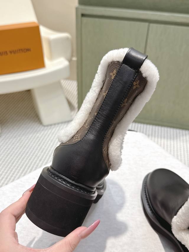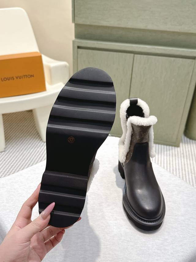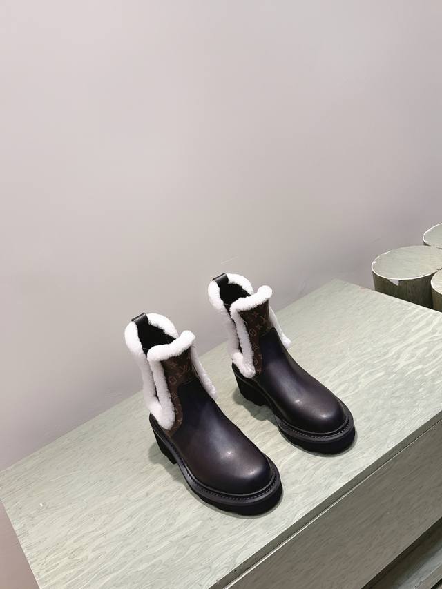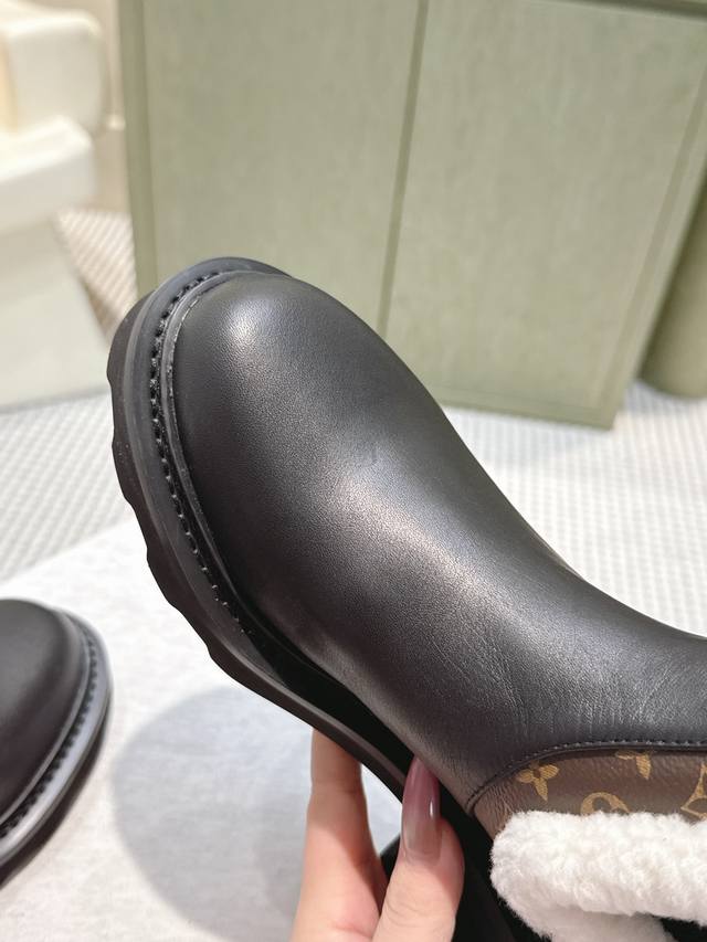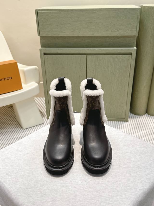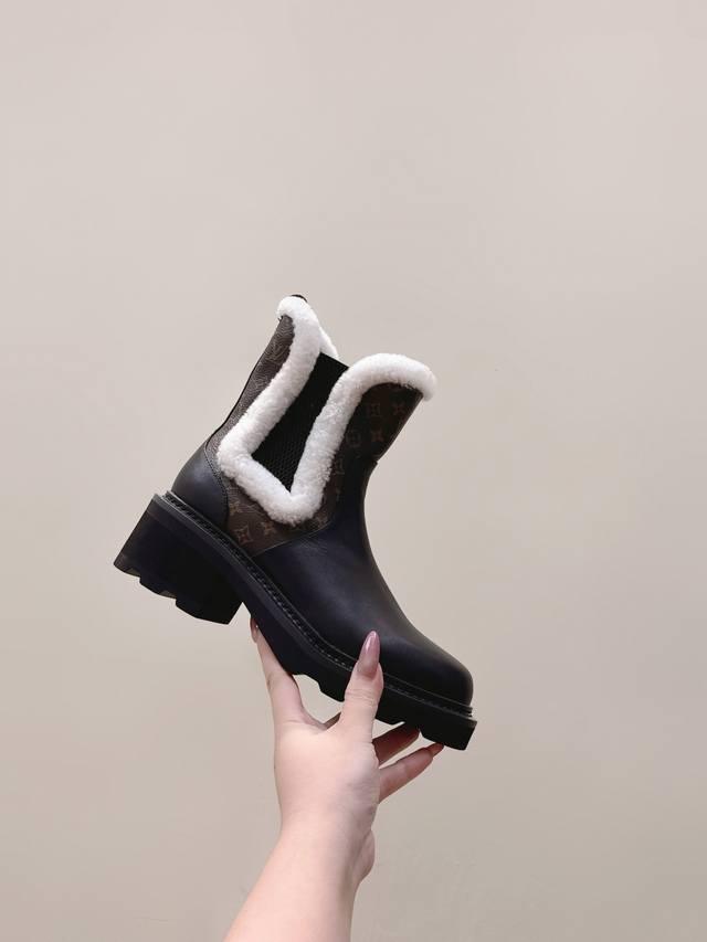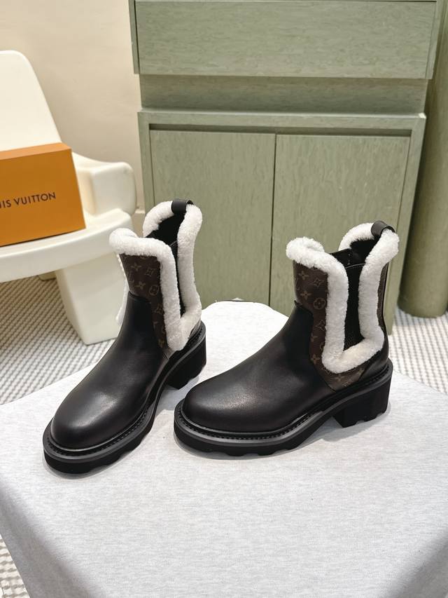 Retail-grade DDD These Lottusse shearling Chelsea boots feature a classic design and high-quality leather. The inner lining is incredibly soft and warm! The Monogram pattern on the upper is stylish and versatile, perfect for autumn and winter. The thick sole provides cushioning and comfort, suitable for both work and casual wear. The brown color with off-white fur trim is retro and warm, and it pairs well with jeans or skirts, effortlessly creating a sophisticated look. DDD Size: 35-39 40.41 Custom-made DDD