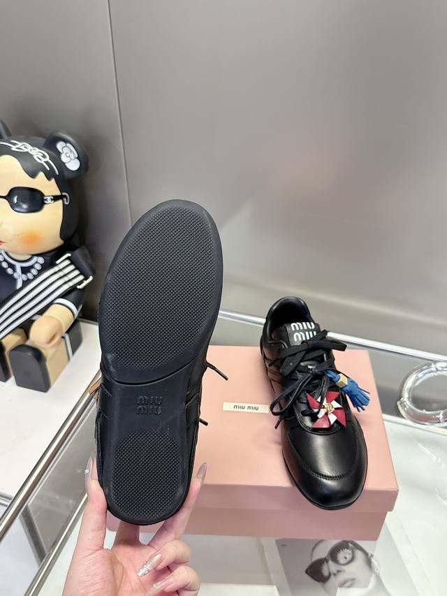 Retro New Chapter: Miu-style waxed calfskin shoes, reconstructing fashion genes with meticulous craftsmanship. Selected vintage waxed calfskin, its texture deepens with time, every grain a testament to craftsmanship; a striking metal buckle adds a touch of retro tension, locking in a high-end style; embellished with artistic floral details, fusing romance and individuality, every step a declaration of fashion attitude. When the trendsetting secrets of internet celebrities meet classic craftsmanship, these shoes become a style anchor in your wardrobe