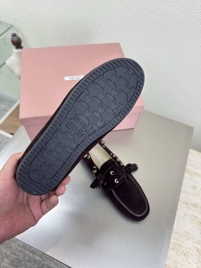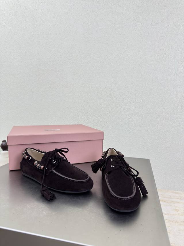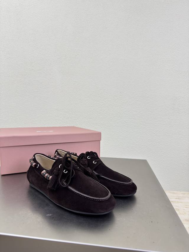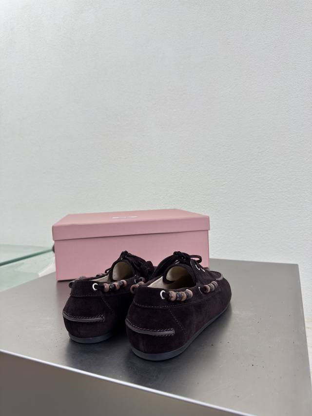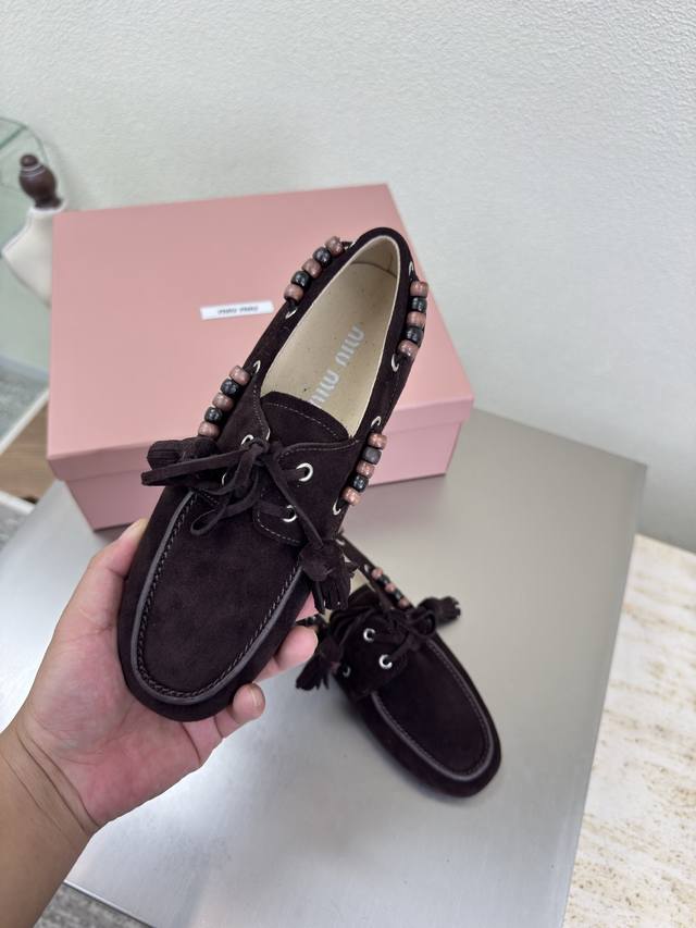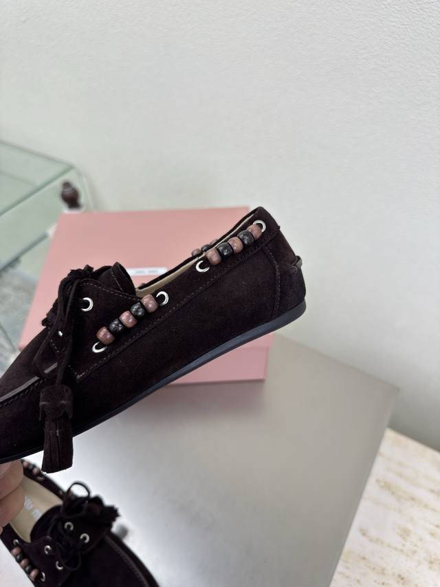 Retro Wooden Beaded Miu'miu Loafers DDD Dark Coffee High-Gloss Calfskin Leather DDD Flat Design DDD Series Miu'miu Classic Comfortable Manufacturing DDD Original Version Consistent Molding Outsole High-Quality Version DDD High-Gloss Calfskin Leather Material DDD 3D Stitching Process DDD Original Version Consistent with the Version DDD Girlish Design Comfortable DDD Standard Version DDD Sizes 35 36 37 38 39 40 41 40 41 Custom Sizes DDD Original Packaging Included DDD