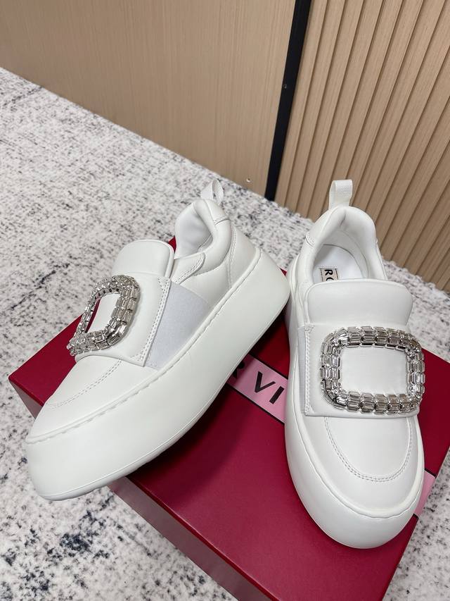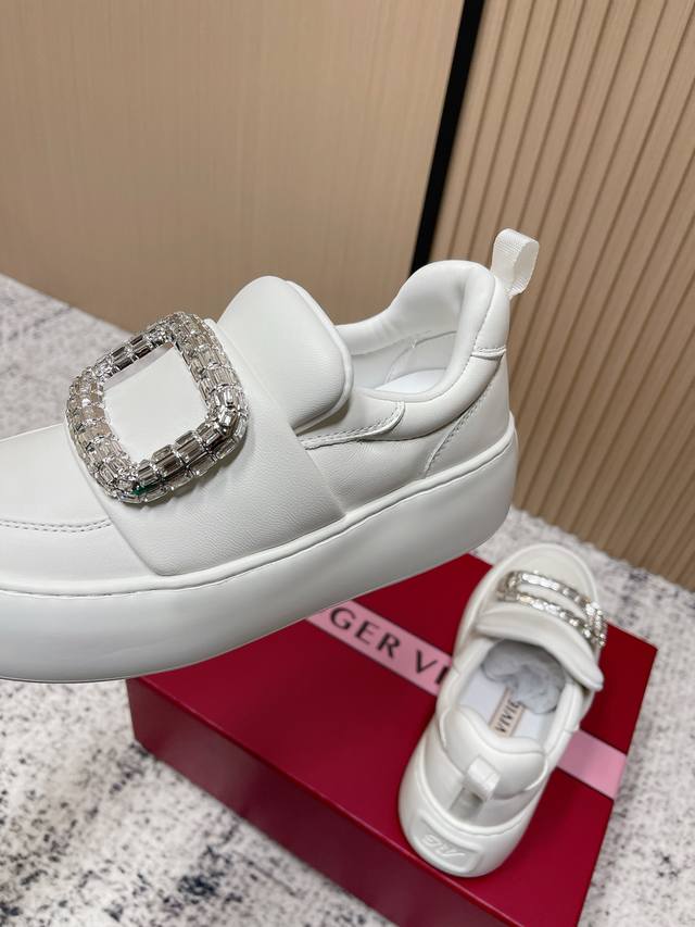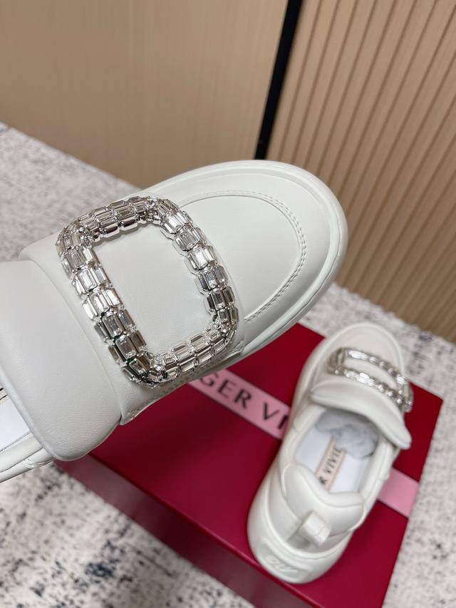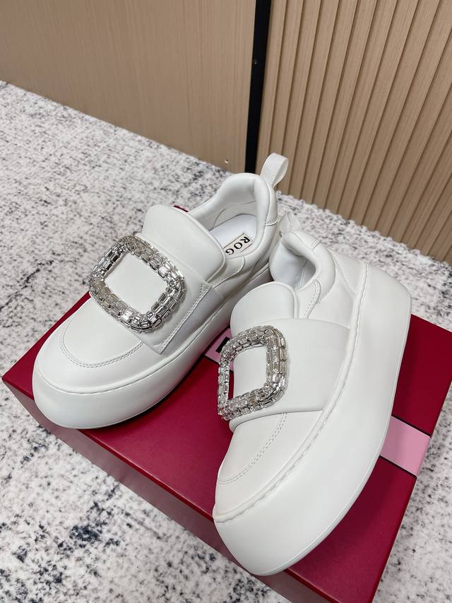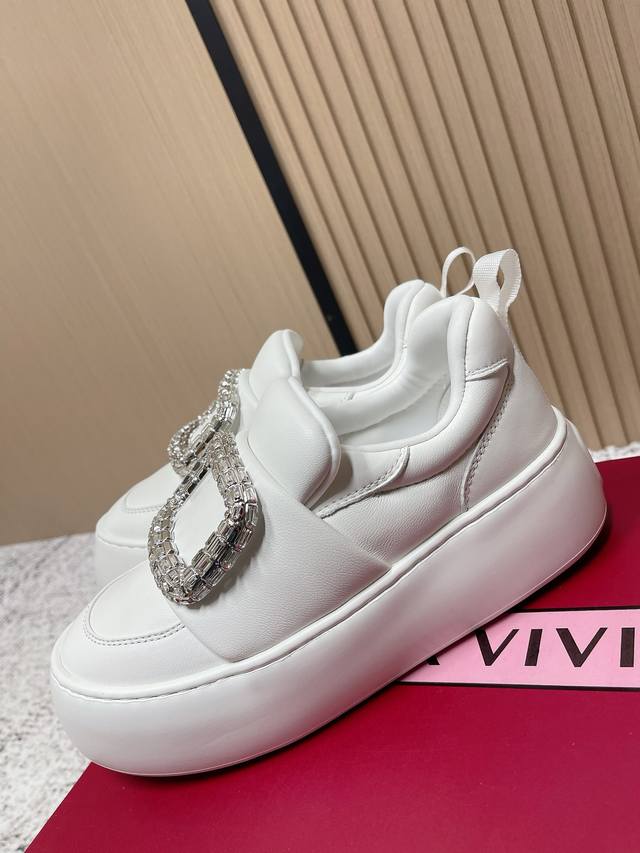 Roger Vivia's latest Viv'up puff shoes, cute and chubby white sneakers. Upper: Custom cowhide. Insole: Original sheepskin. Outsole: Original Eva outsole. Sole thickness: 5cm. Sizes: 35-40, 40 custom-made.