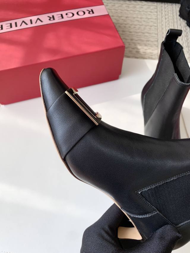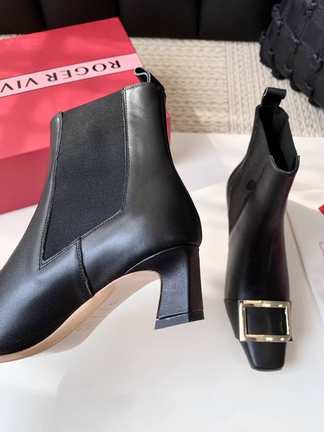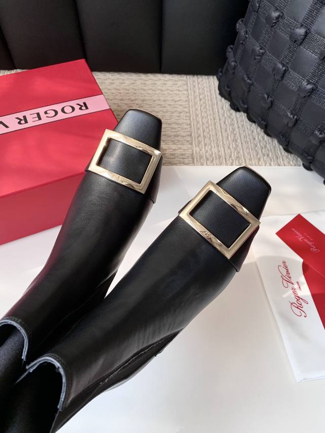 Roger Vivie* Classic square buckle Chelsea chunky heel short boots