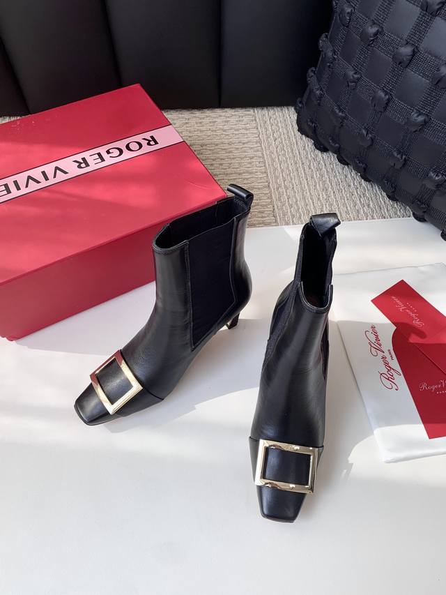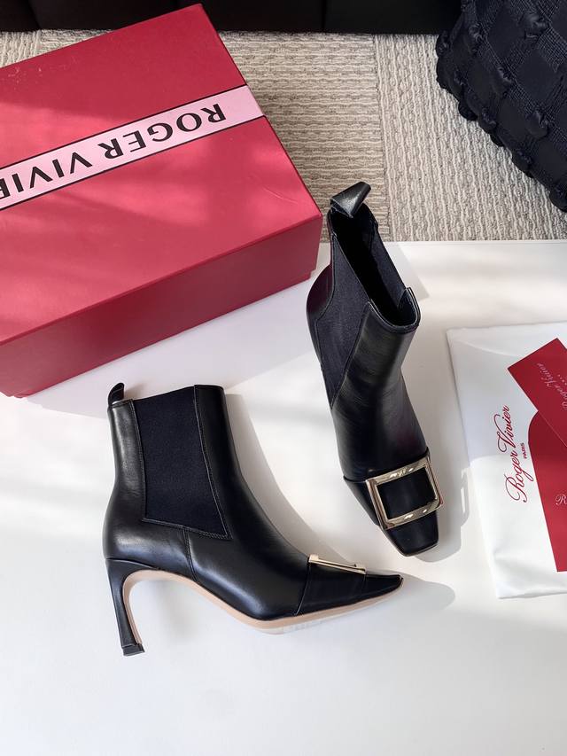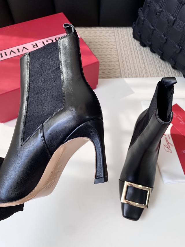 Roger Vivie* Classic square buckle Chelsea high-heeled ankle boots