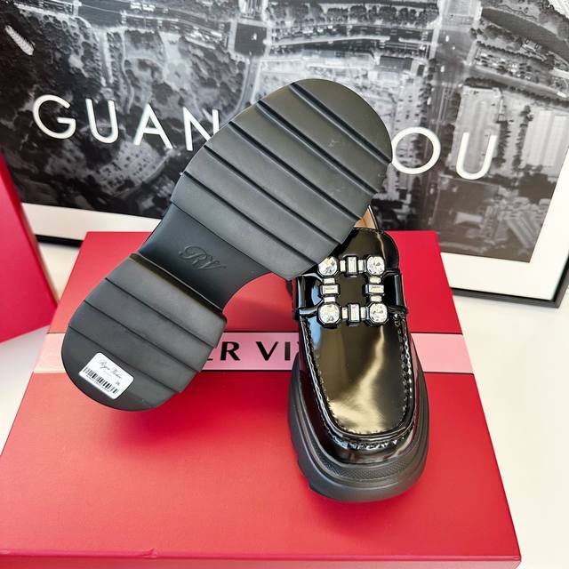 Roger Vivier's latest Wallaviv diamond-buckle patent leather loafers are undoubtedly a must-have for autumn and winter! A 1:1 replica of the original, the highest quality version. Adorned by celebrities like Liu Wen and Tang Yan, these loafers are incredibly versatile and stylish. This year's version is also a completely updated and improved high-quality replica. The upper is made of imported cow patent leather that won't crack even at -20 degrees Celsius. The lining is made of mixed sheepskin. The diamond buckle features original K9 diamonds. The outsole is made to the original mold, with a 3.5cm heel height. Standard sizes 35-40; sizes 40 are custom-made and non-refundable.