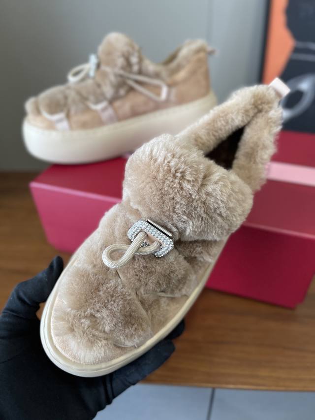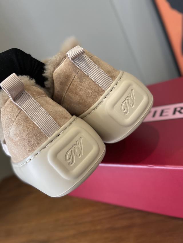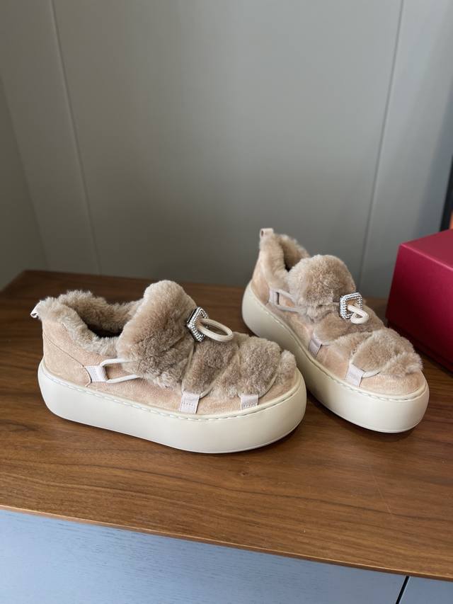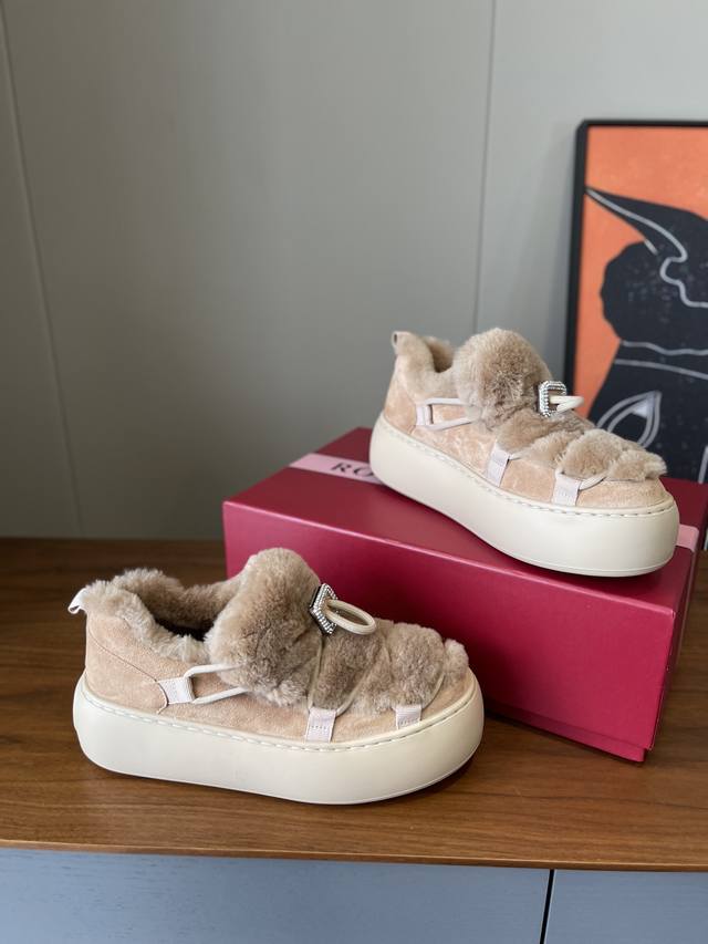 Rogervivien 25 Latest Rv Wool Loafers DDD Lightweight and comfortable, like walking on a yoga mat. The 5cm outsole is made of lightweight Eva material, easily adding a Viviennese touch to casual outfits. The rounded shape and drawstring design are adorned with rhinestone buckles for added style. Suitable for autumn and winter wear, both warm and versatile. DDD The upper combines suede leather and lamb's wool, with a soft and fluffy lining. DDD The sole is made of lightweight and flexible Eva material, providing a comfortable experience. DDD Sizes: 35, 40. 40 is custom-made, non-refundable and non-exchangeable. DDD