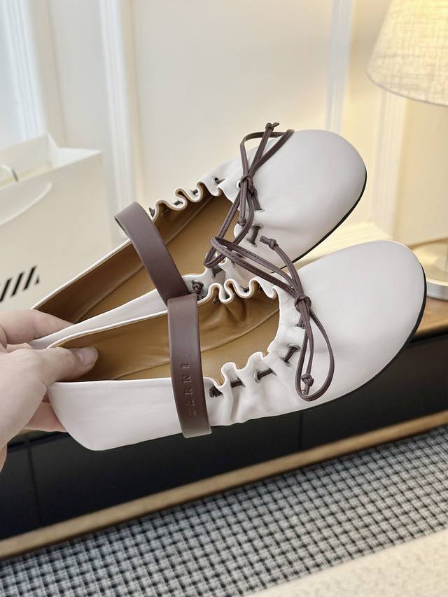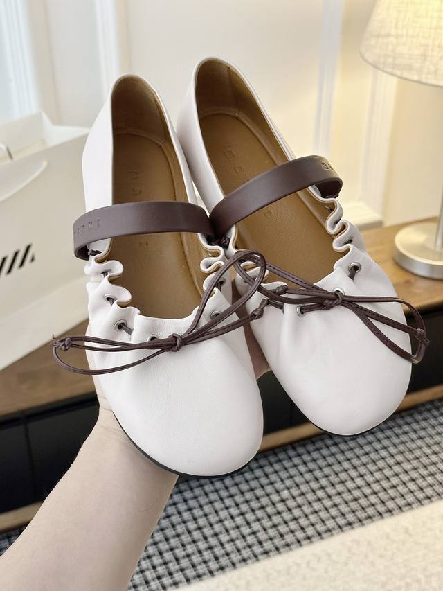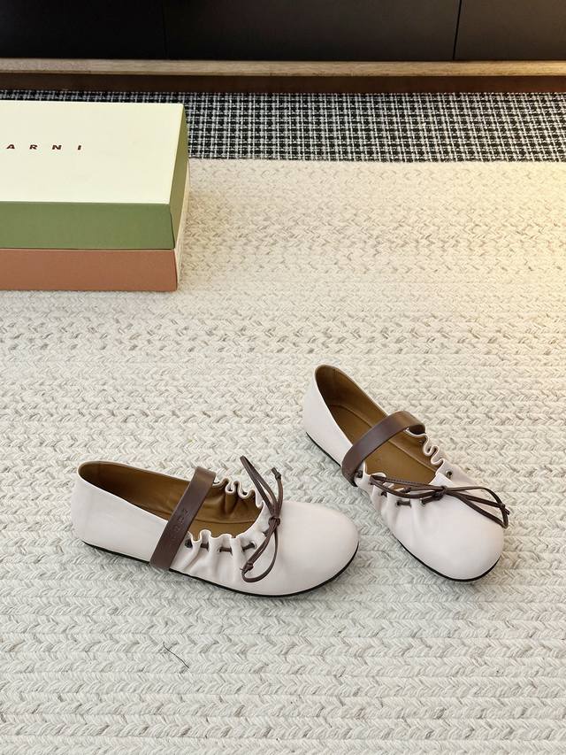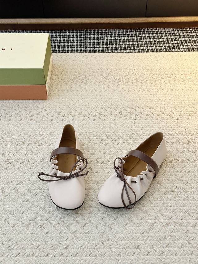 Ruffled Bow Ballet Flats: Gentle Mary Jane Style, Classic Reimagined DDD Round Toe Silhouette, Color-Blocked Upper Ddd Brown Bow Tie Details Ddd Perfect Balance of Cuteness and Minimalism DDD A Pair of Super Cute Marni Ballet Flats Ddd Color-blocked Design with a Relaxed Atmosphere Ddd Lace-up Details, Sweet and Cool, Just the Right Amount DDD It's Balletcore Season Again Ddd Open Your Shoe Cabinet, It's That Pair Ddd A Pair That Can Go with Everything and Brighten Up Everything Ddd Upper Material: Imported Crystal Goatskin Ddd Insole: Goatskin Ddd Outsole Material: Molded Rubber Outsole Ddd Size Selection: 35-40 Size 40 Custom Made, No Returns or Exchanges DDD