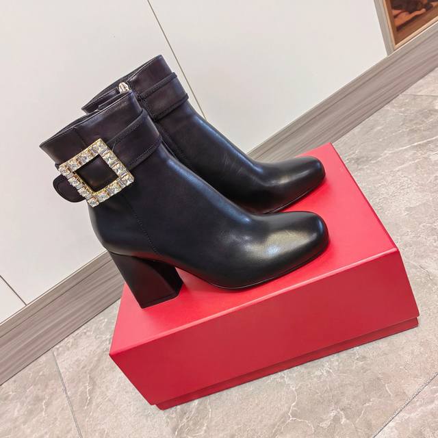 Rv's highly aesthetic shoes, goddess-inspired short boots, the latest counter synchronization, timeless purchasing quality, the classic snowflake buckle is particularly dazzling, perfect and impeccable