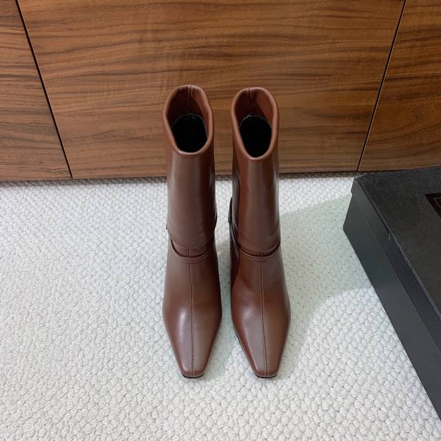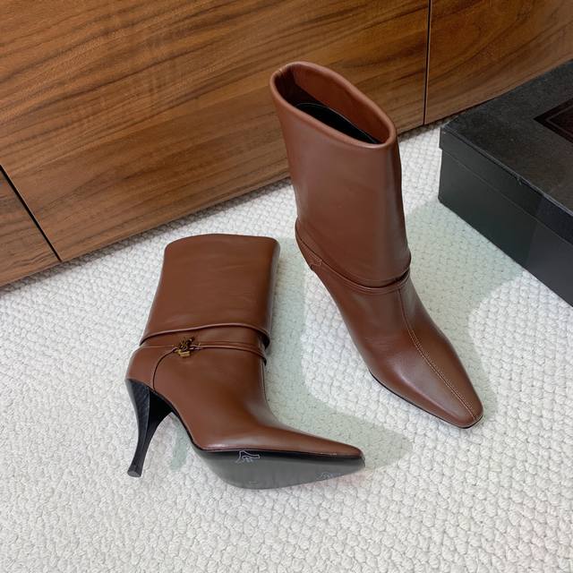 Sain* Laure* High-heeled ankle boots. Comfortable to wear, simple and versatile, making legs look slimmer and exuding a goddess-like aura. Material: Cowhide and sheepskin upper. Sheepskin lining and insole, genuine leather outsole. Heel height 9.5cm. Sizes: 35-41. Sizes 40 and 41 are custom-made and non-refundable. Wholesale: [Not specified]