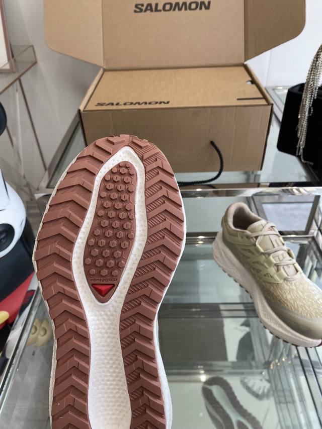 Salomon Aero Glide 3 Grvl (Grvl version) features a more tightly woven upper with waterproof and stain-resistant outer seams, offering excellent breathability. The wider toe and midfoot allow for a wider fit, while the high-elasticity semi-inner bootie design and elasticated tongue collar effectively prevent sand and gravel from entering. The laces have a rigid, flat ribbed design and include a rigid heel counter with medium-strength honeycomb reflective material and ample foam padding. The 4mm Orthoiite molded insole is a comfortable and elastic outsole made of beige supercritical foamed popcorn material, providing a sponge-like feel. The Grvl version features a V-shaped serration for better mountain grip. Sizes: 35-45 (Women's 40, Men's 45, custom orders accepted).